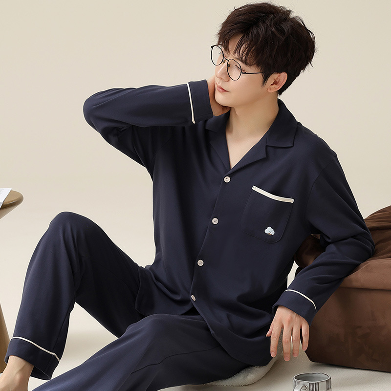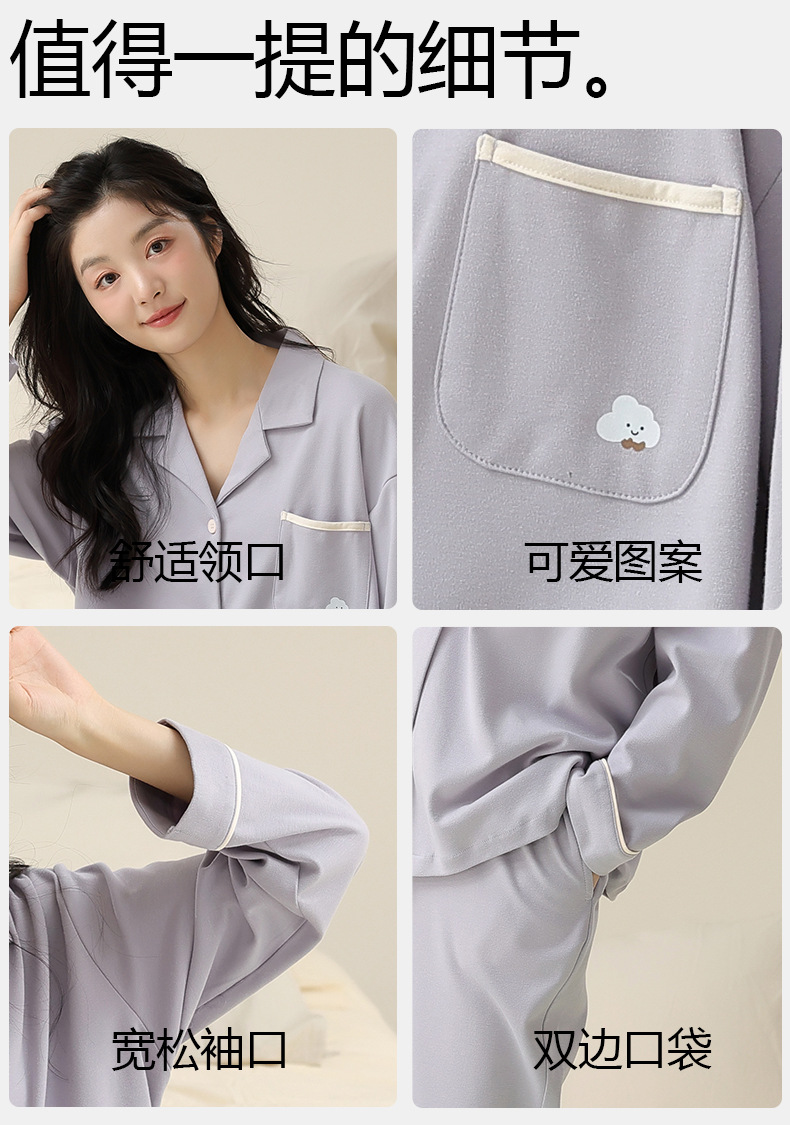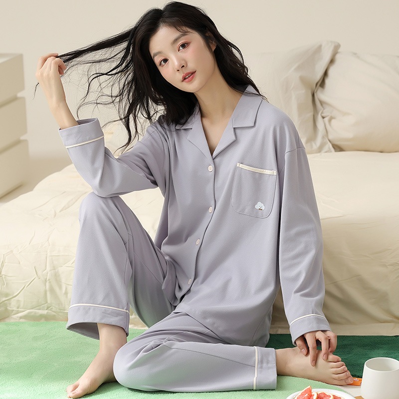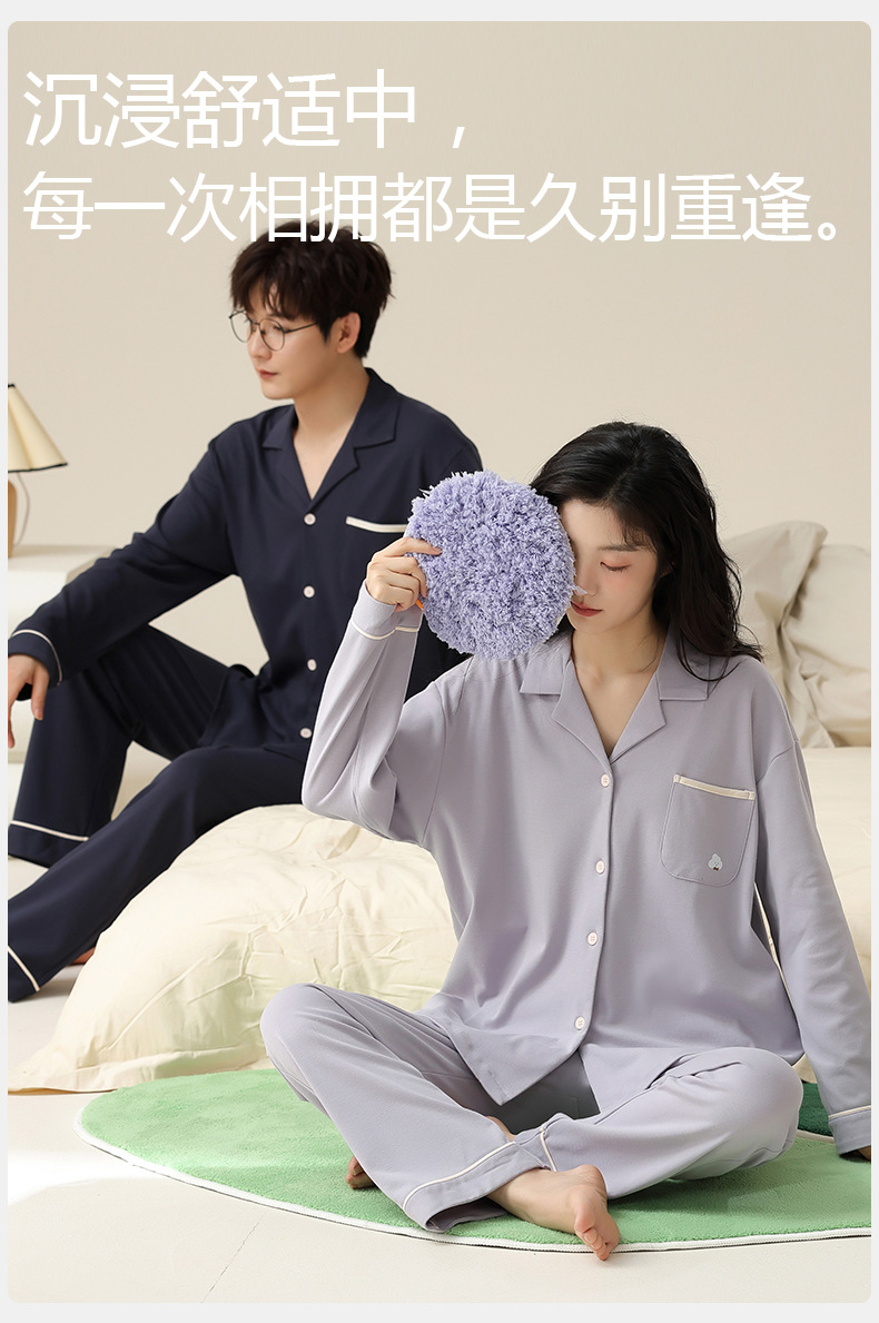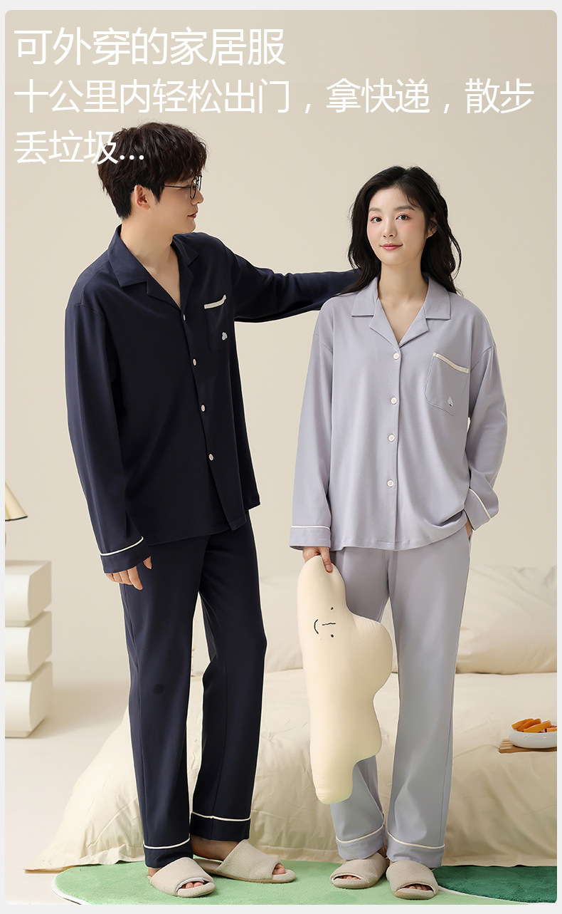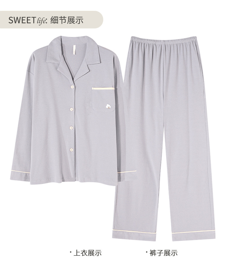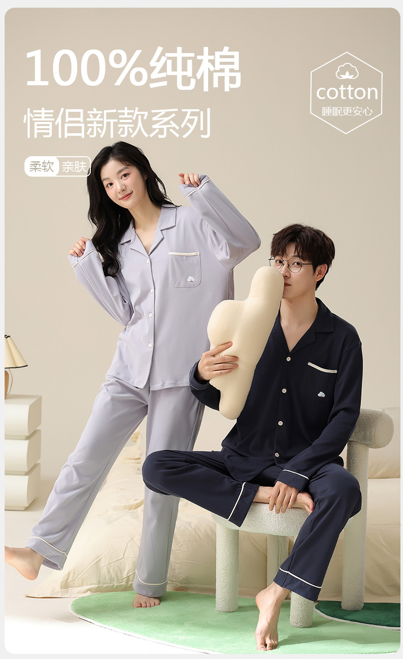 【순면】커플 잠옷 여성용 봄 가을 겨울용 가디건 심플 스타일 긴팔 홈웨어 남성용 투피스 세트스토어 가기