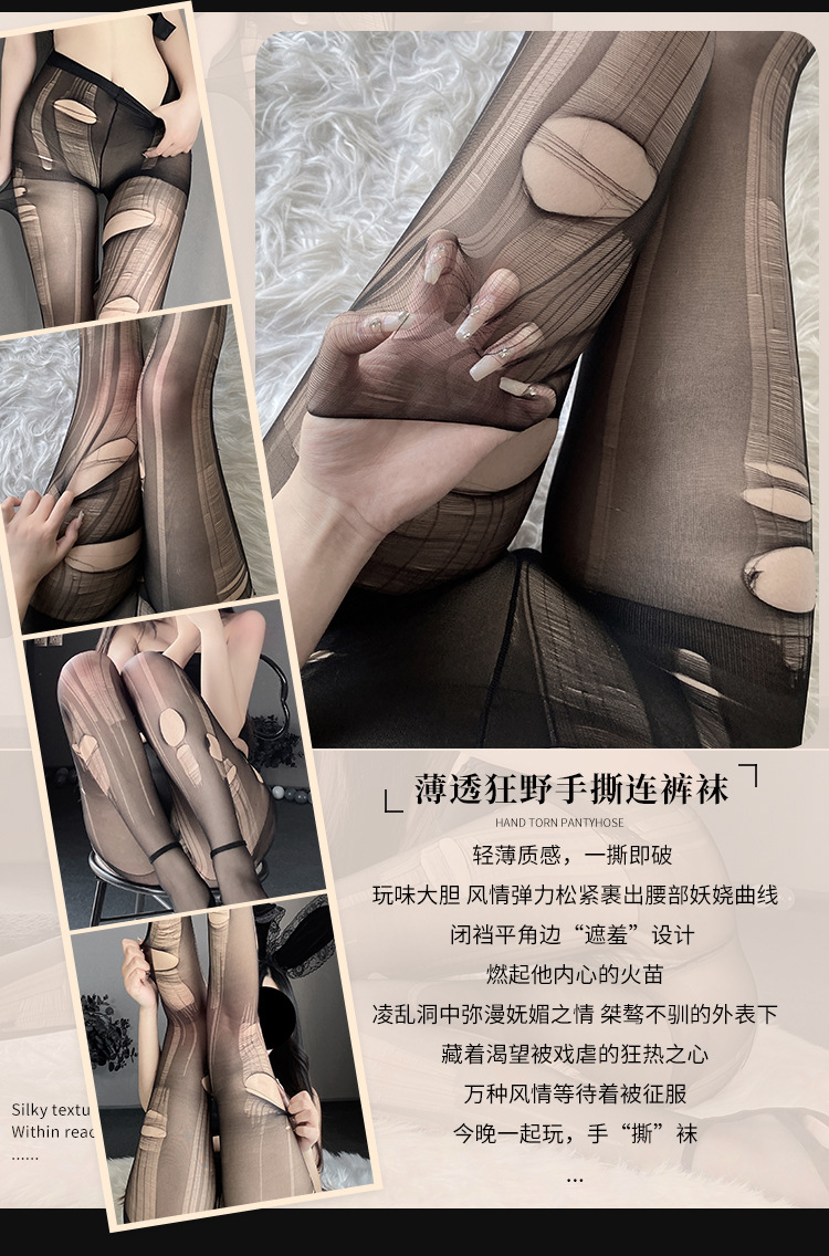 손으로 찢은 초박형 일회용 눈물 블랙 섹시한 여성용 구멍이없는 양말 팬티 스타킹 찢어지기 쉬운 감정적 인 블랙 실크 재미스토어 가기