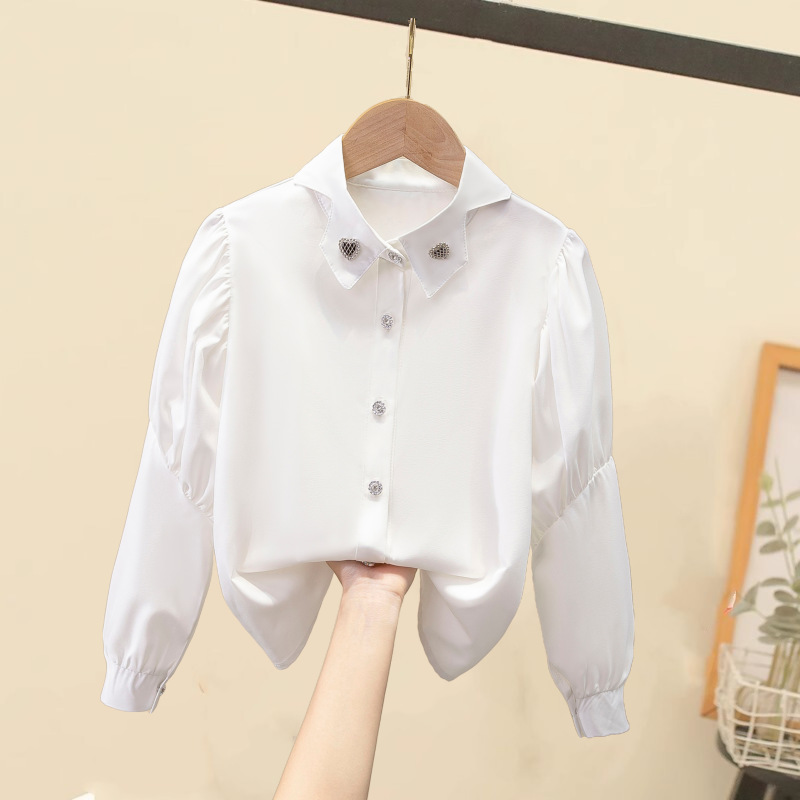여자 귀여운 레이스 칼라 셔츠 2023 어린이 유행 아기 봄과 가을 긴 소매베이스 셔츠 도매스토어 가기