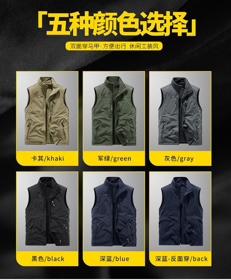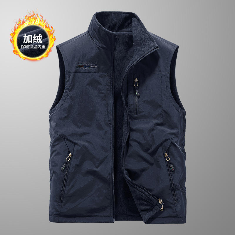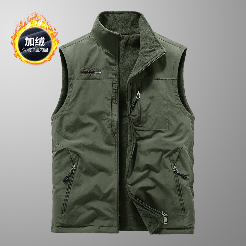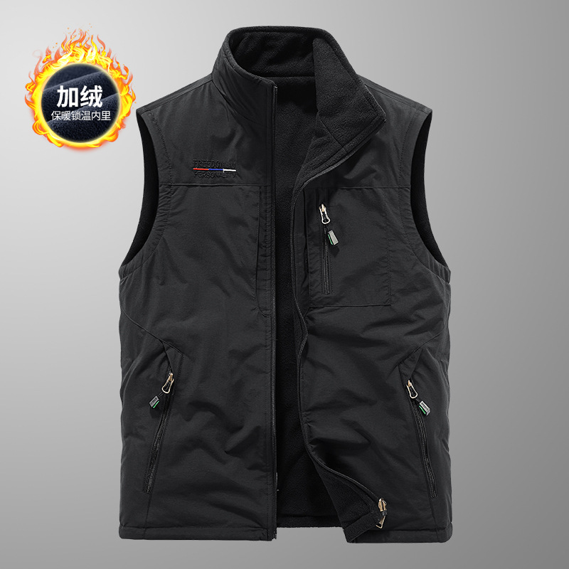 가을과 겨울 양면 양복 조끼 남자의 야외 스포츠 양털 조끼 북극 양털 조끼 기모 두꺼운 양복 조끼