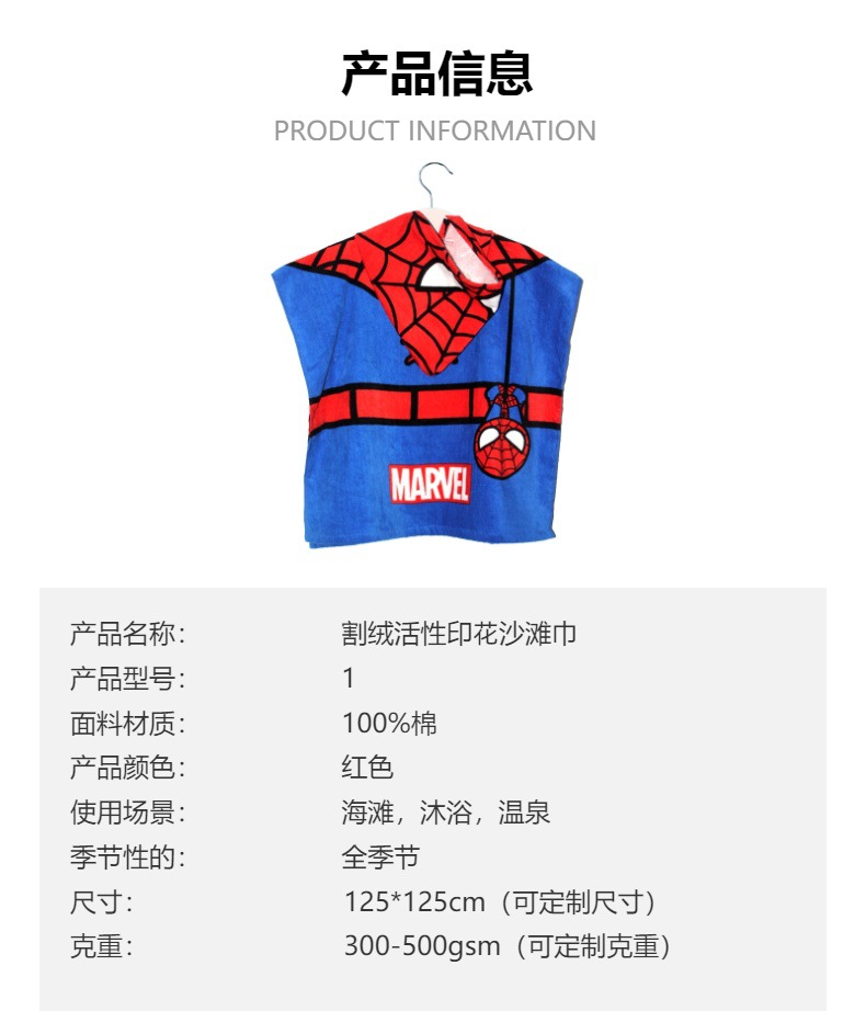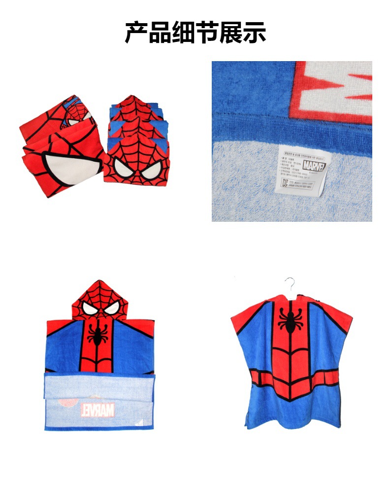 儿童纯棉浴巾卡通图案可穿带式带帽纯棉速干斗篷连帽儿童浴披浴巾