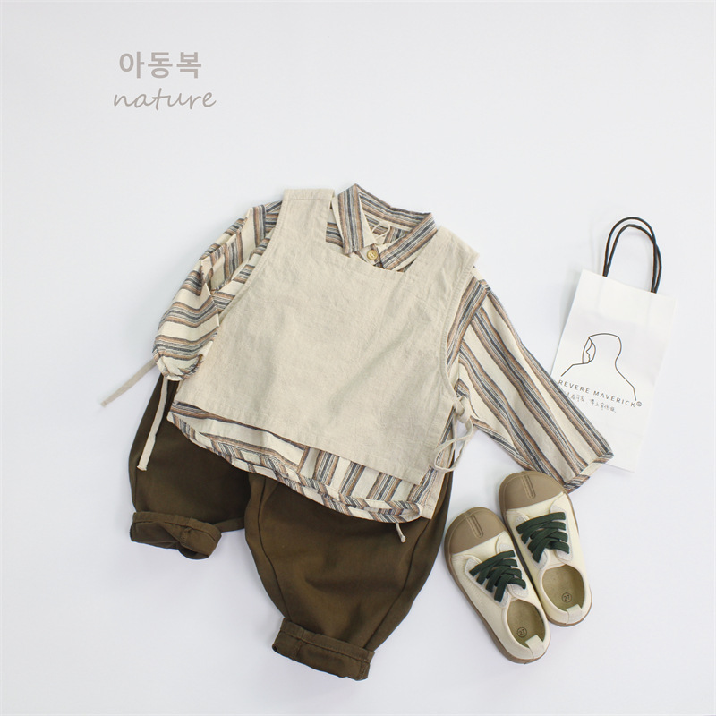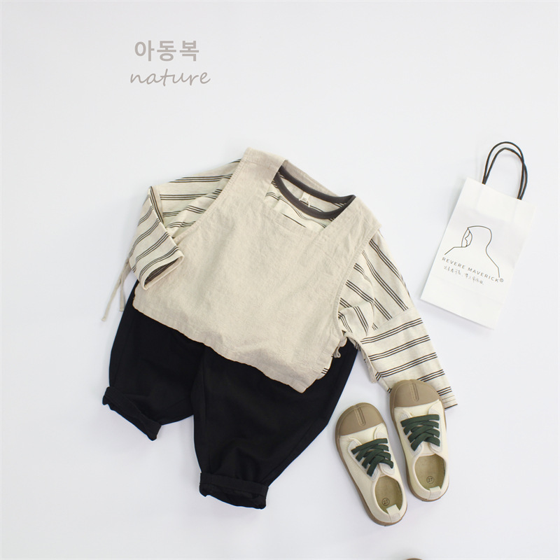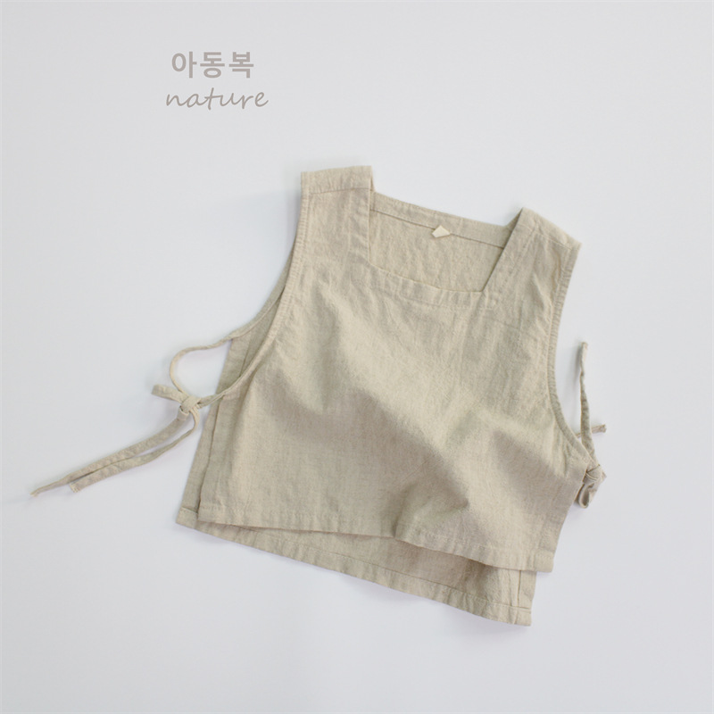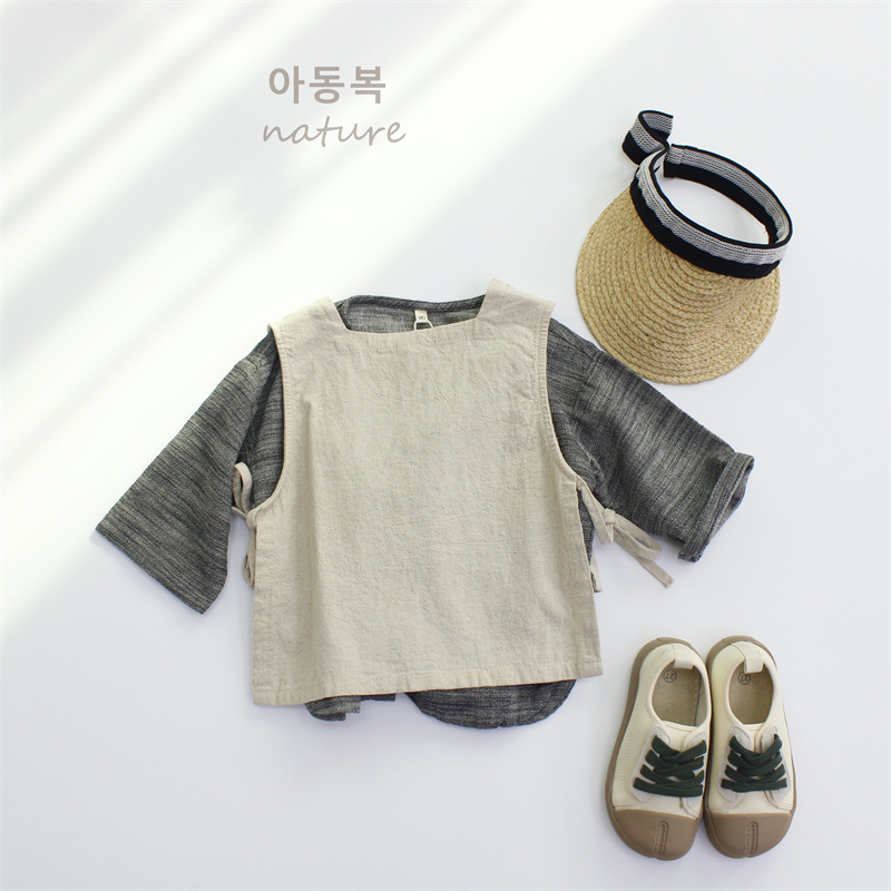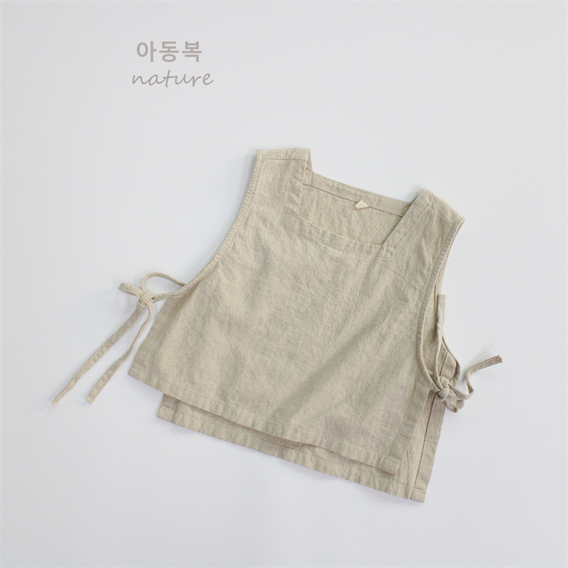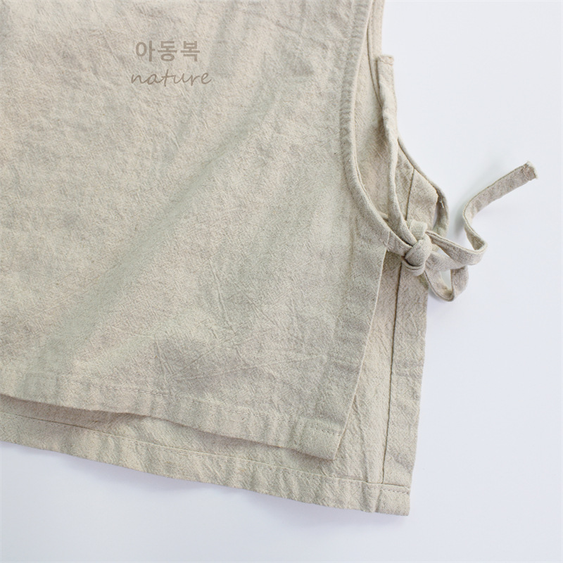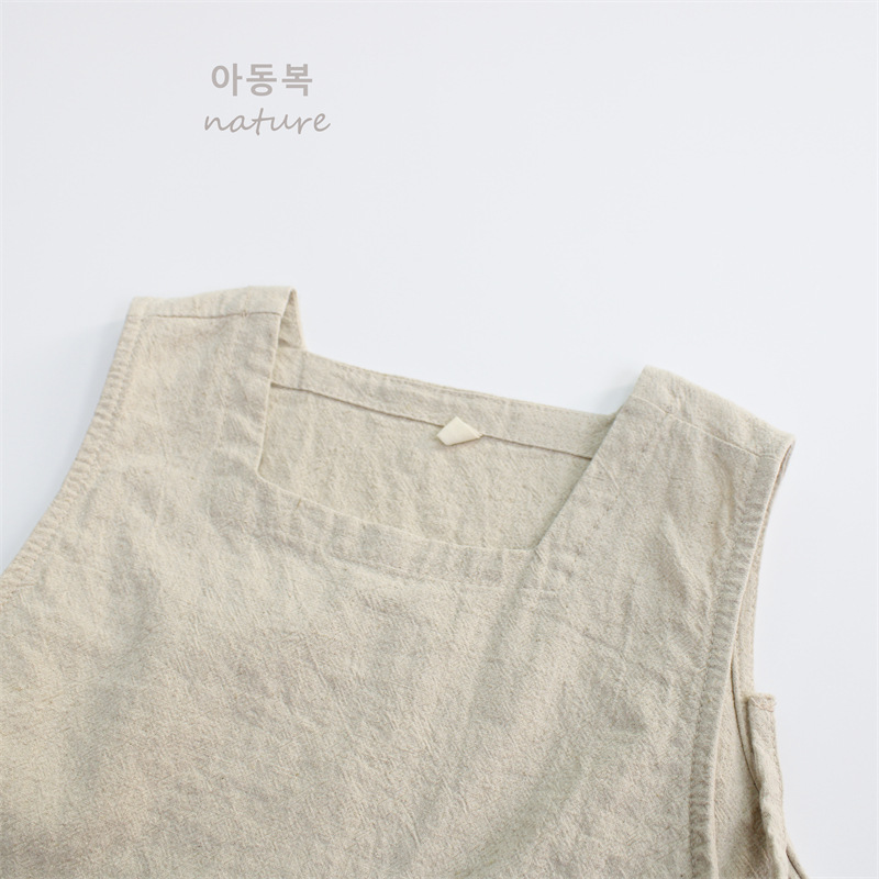 2026 봄 신상품 아동 조끼 남아 민소매 조끼 한국 스타일 단색 린넨 루즈핏 캐주얼 여아 상의