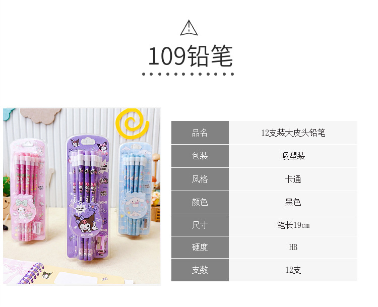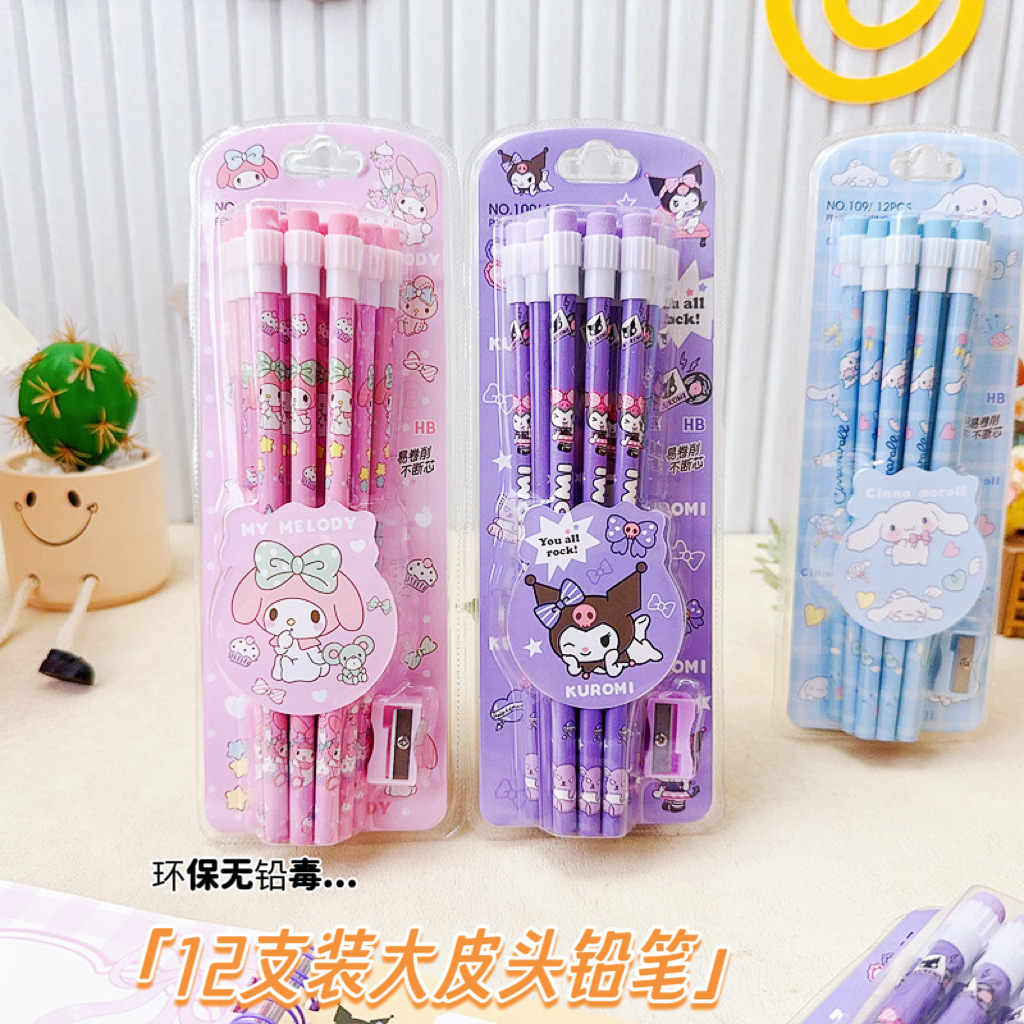 학생들은 큰 머리 지우개와 HB 쓰기 펜을 사용합니다 유치원 초보자 12 팩 만화 유이 개 연필 문구스토어 가기