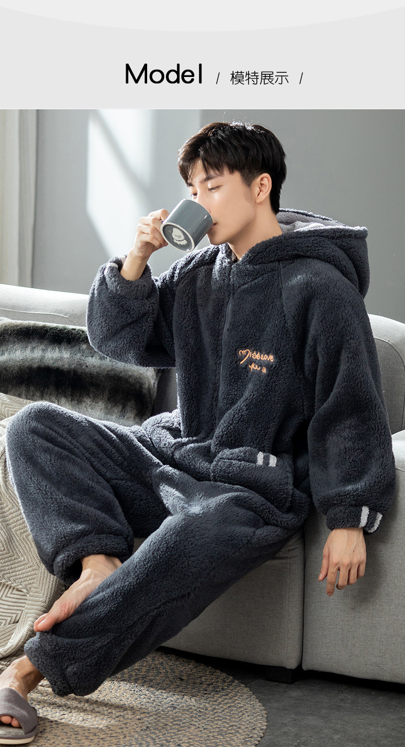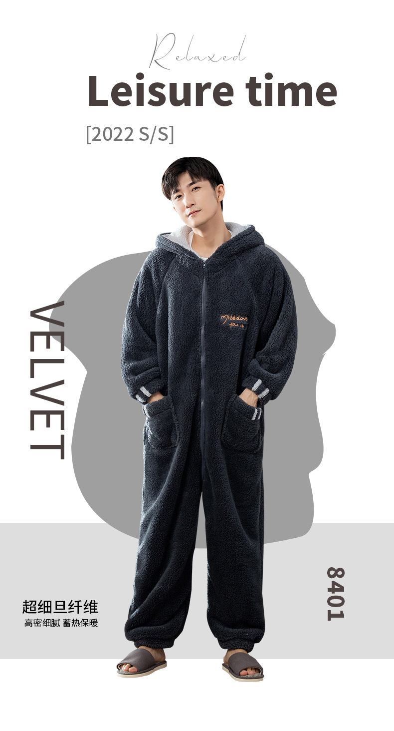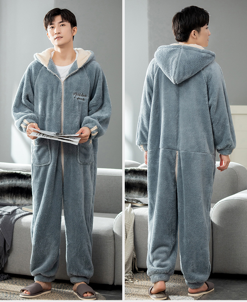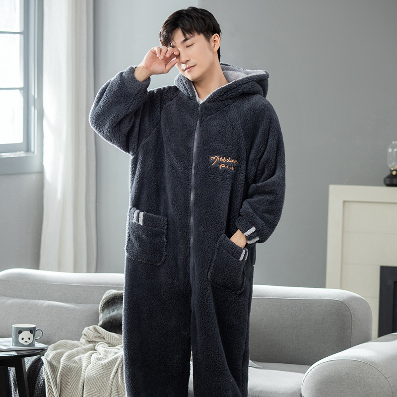 원피스 잠옷 남성용 원피스 겨울 플란넬 전신 십대 성인 두꺼운 산호 양털 가정 의류스토어 가기