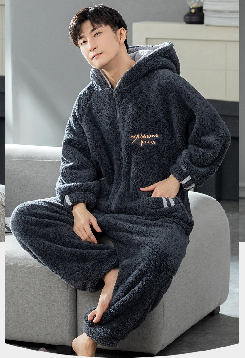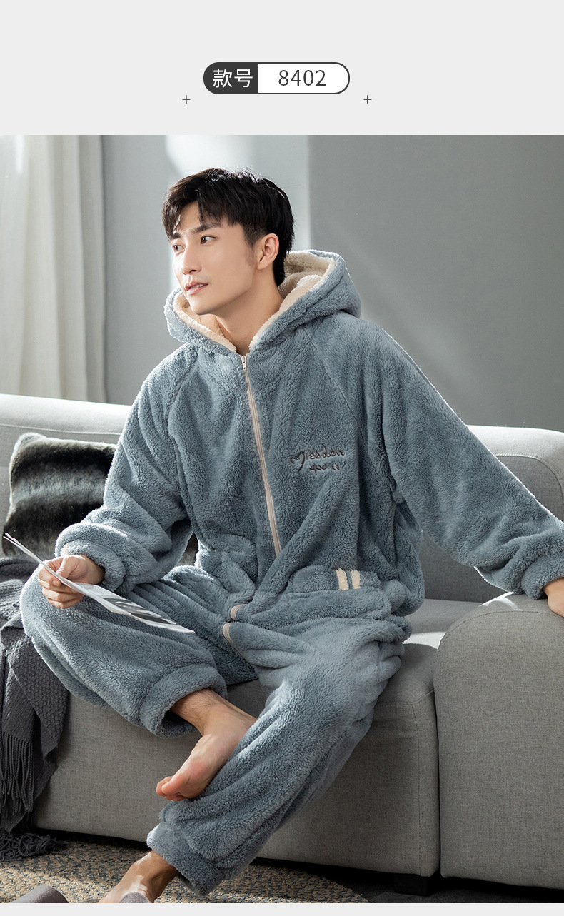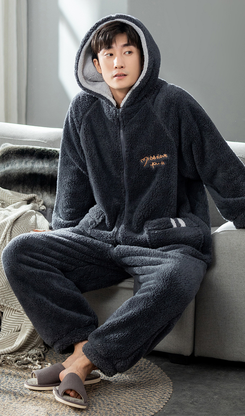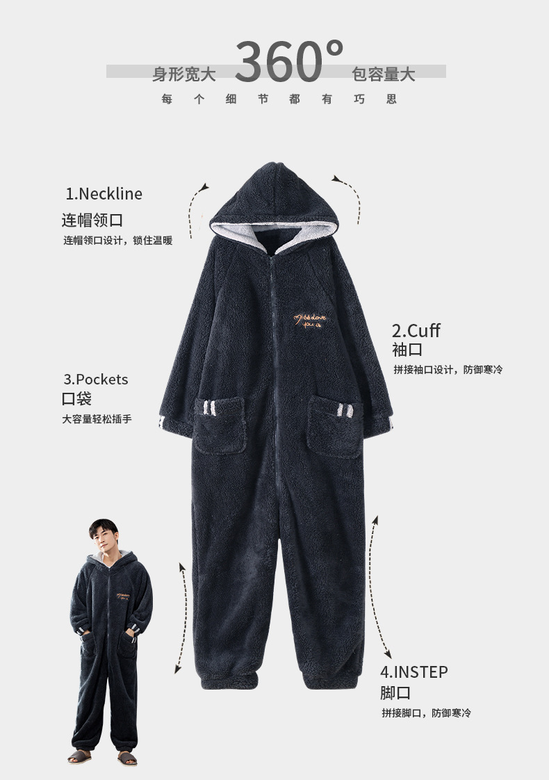 원피스 잠옷 남성용 원피스 겨울 플란넬 전신 십대 성인 두꺼운 산호 양털 가정 의류스토어 가기