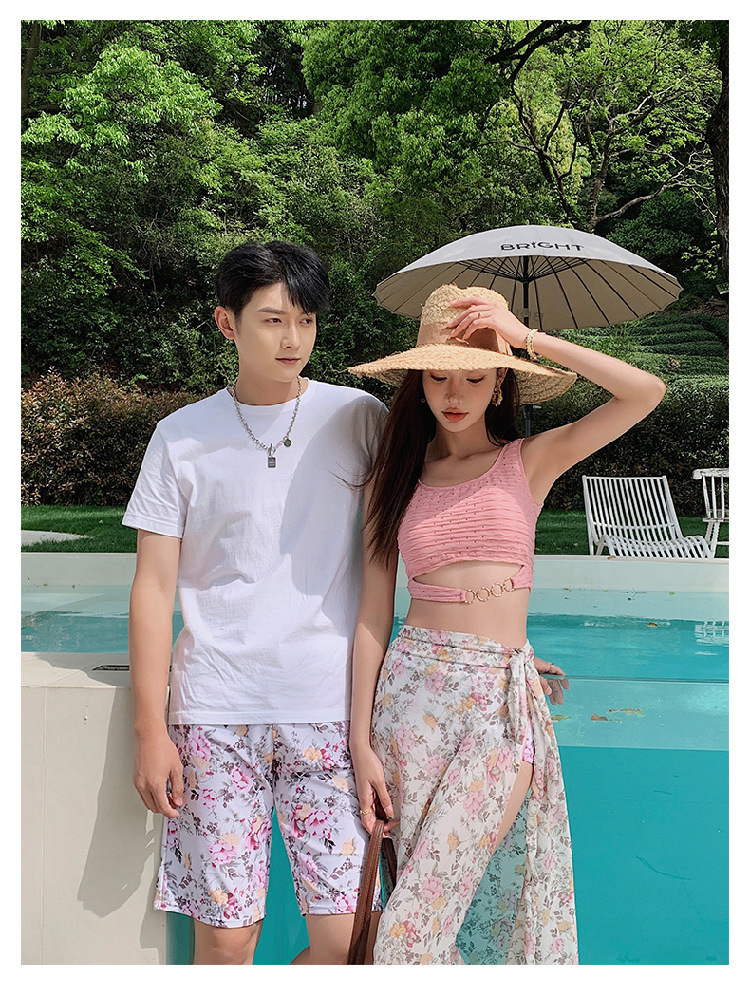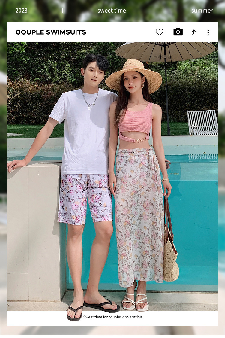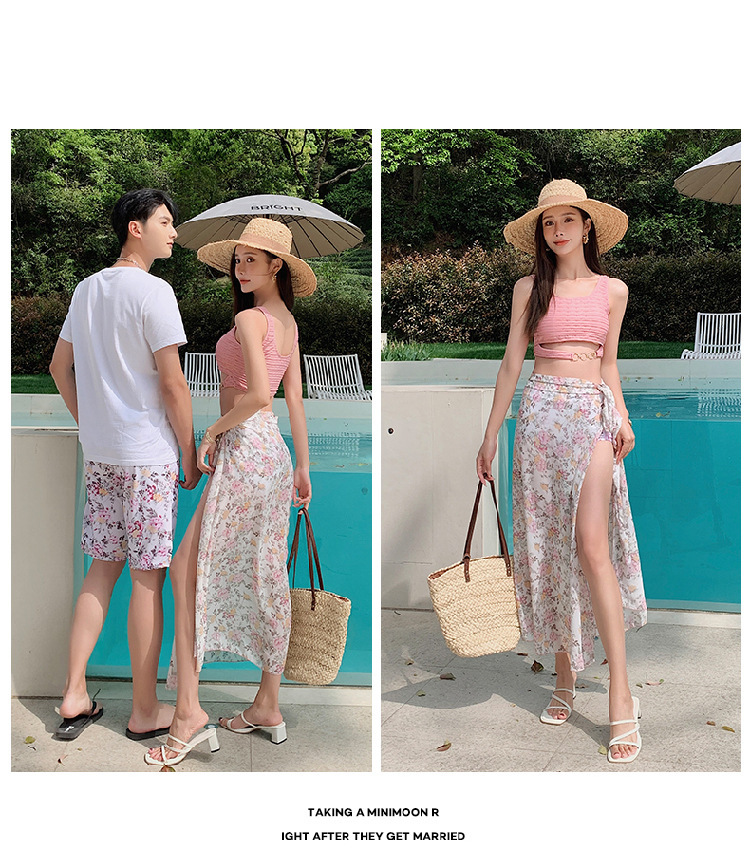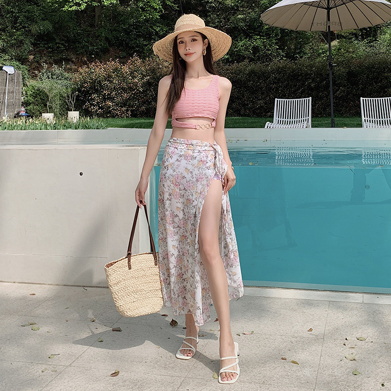커플 수영복 여성용 쓰리피스 스플릿 스커트 비키니 배꼽 덮기 슬리밍 휴가 섹시 모여 요정 스타일 수영복스토어 가기