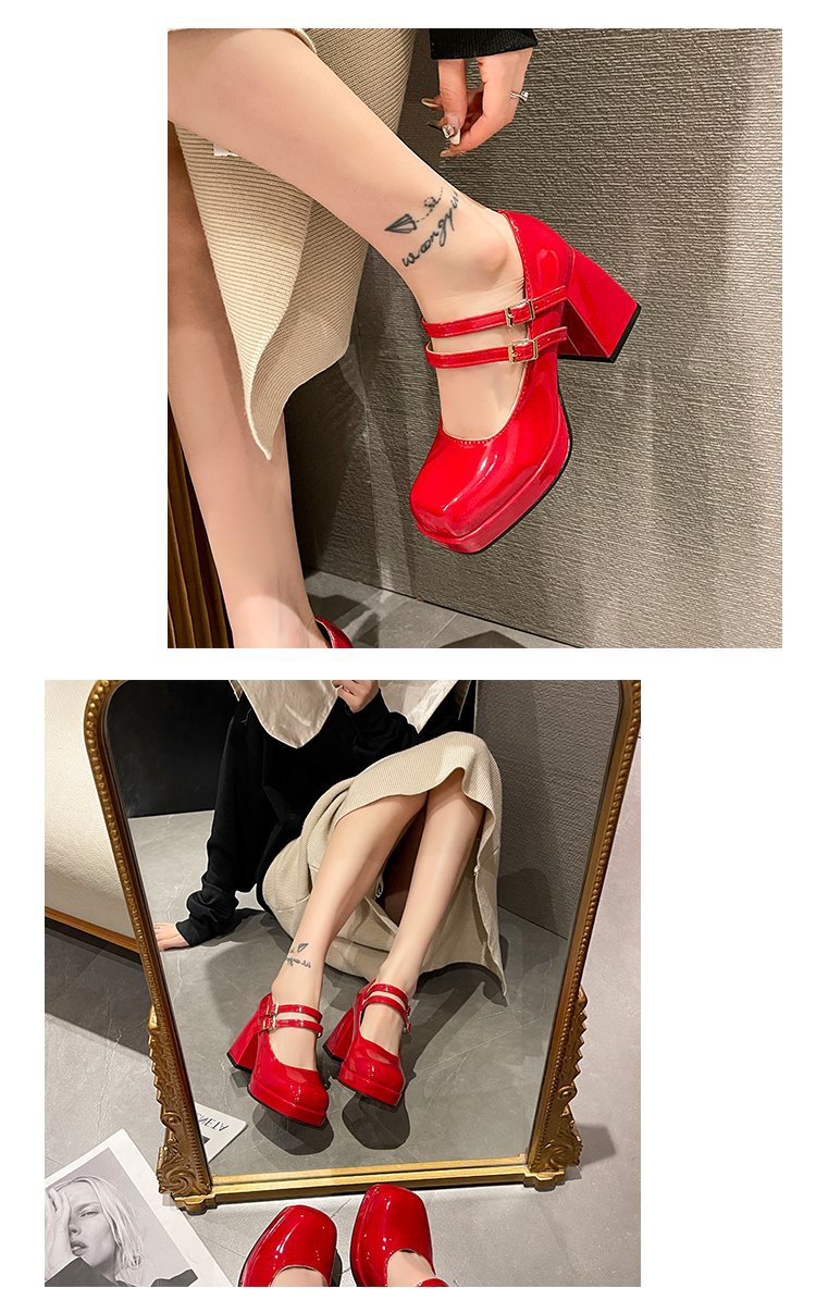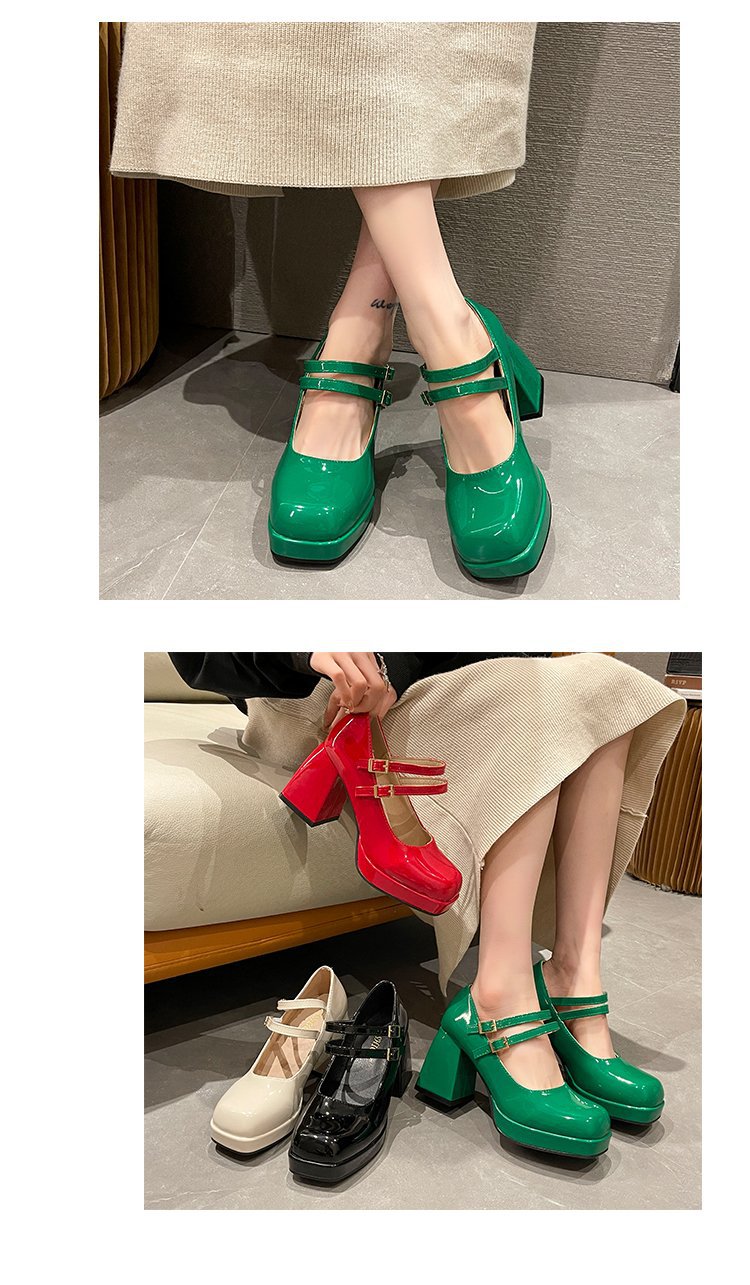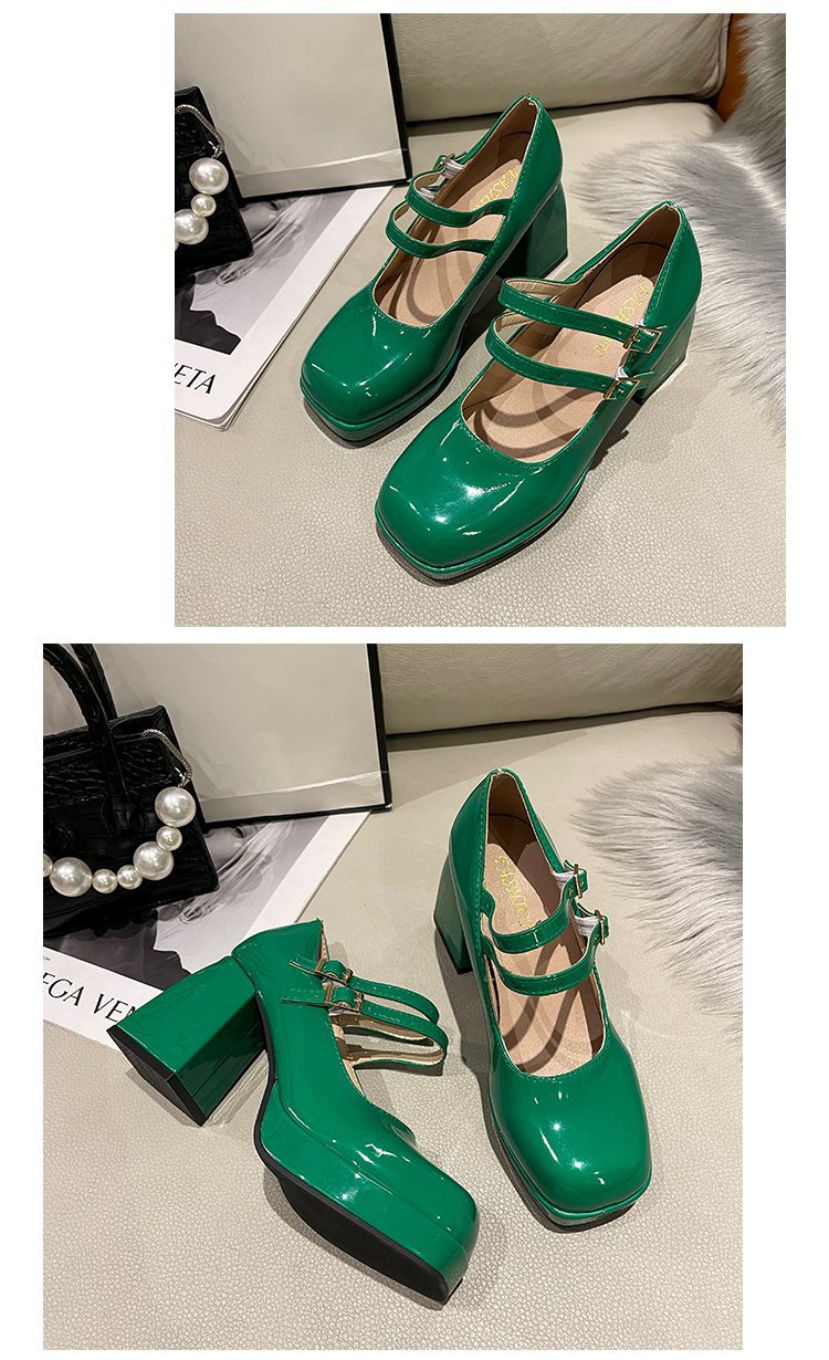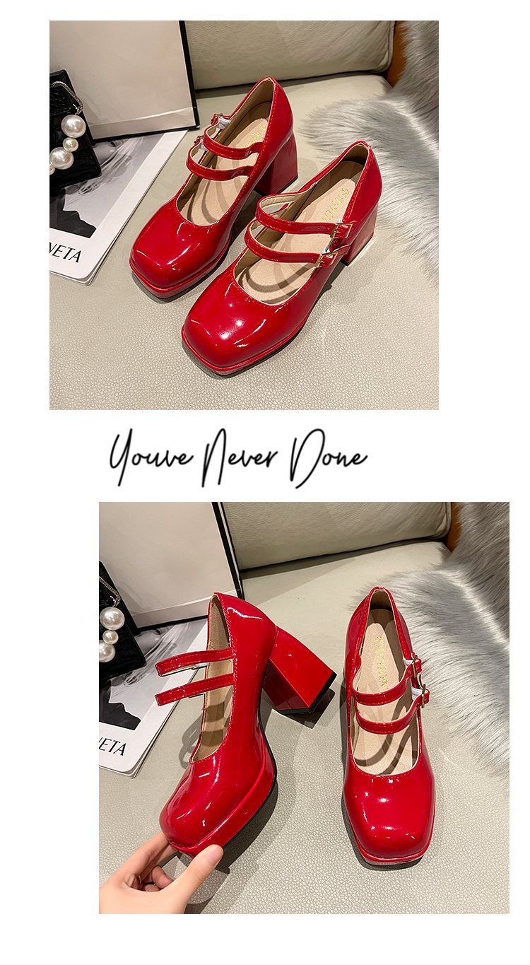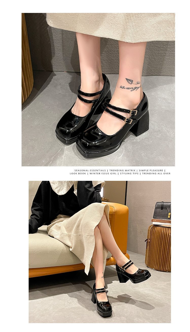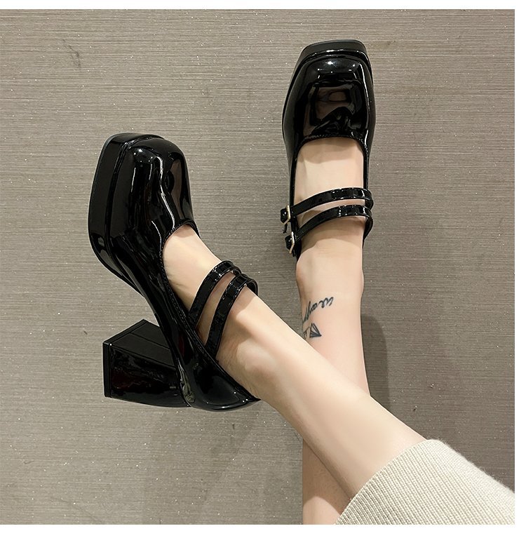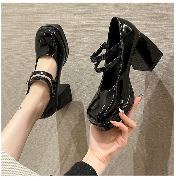 유럽과 미국 복고풍 청키 힐 스퀘어 발가락 신발 여자의 44 플러스 사이즈 봄과 가을 새로운 메리 제인 프랑스 하이힐 패션 신발스토어 가기