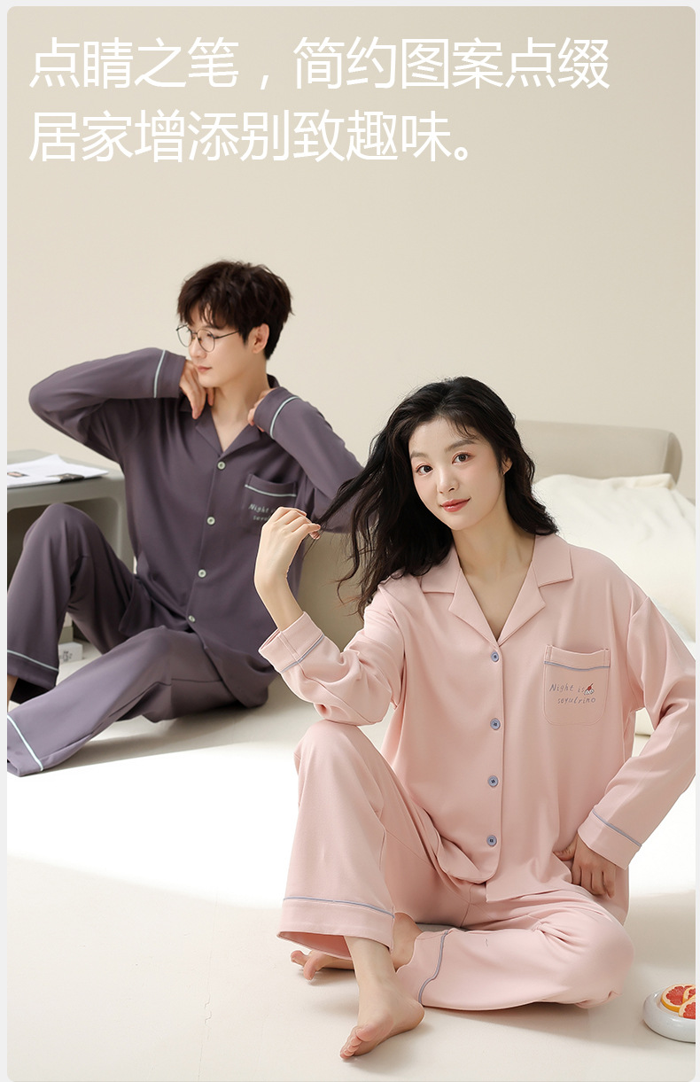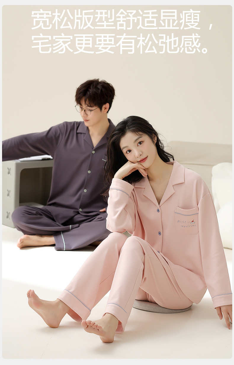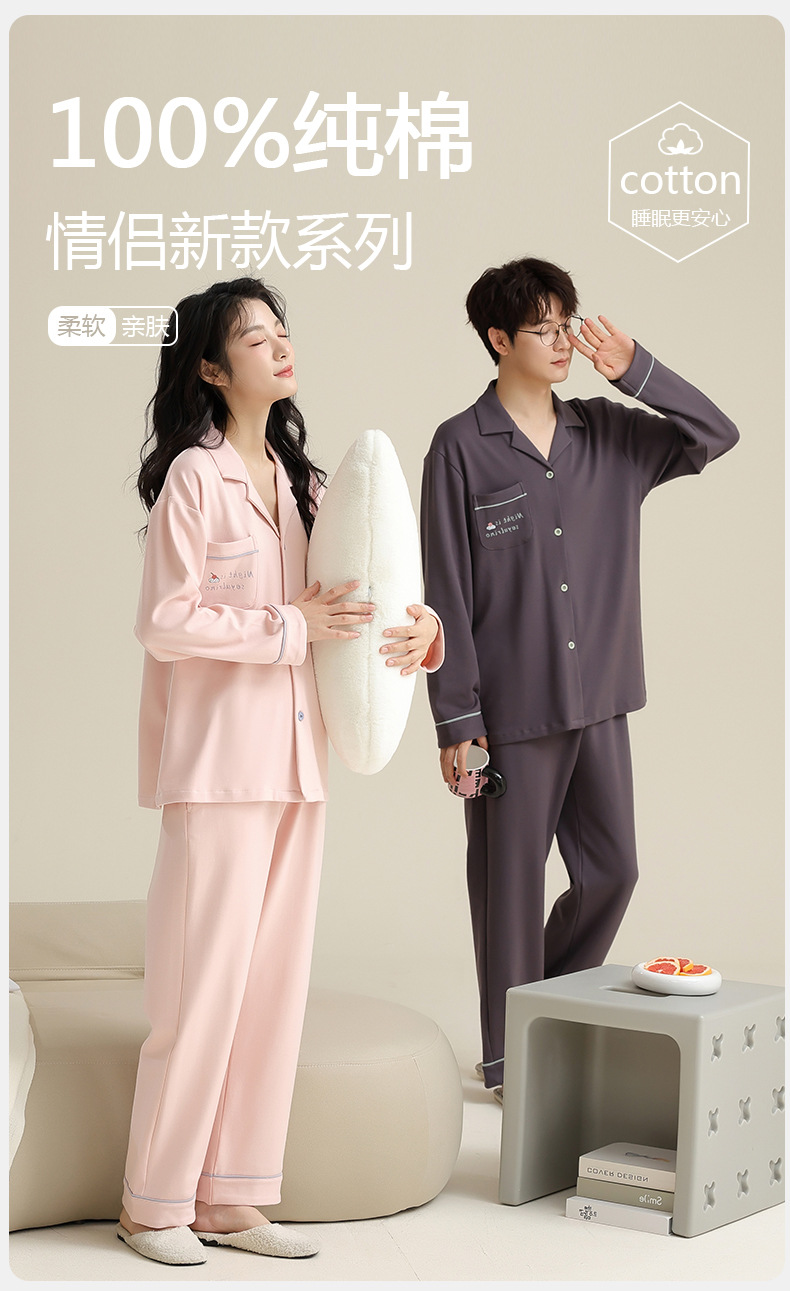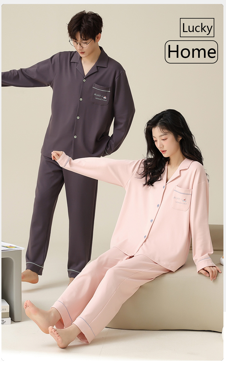 [순면] 커플 잠옷 봄, 가을, 겨울 긴팔 한 남자와 한 여자 달콤한 코튼 캐주얼 스타일 홈웨어 세트스토어 가기