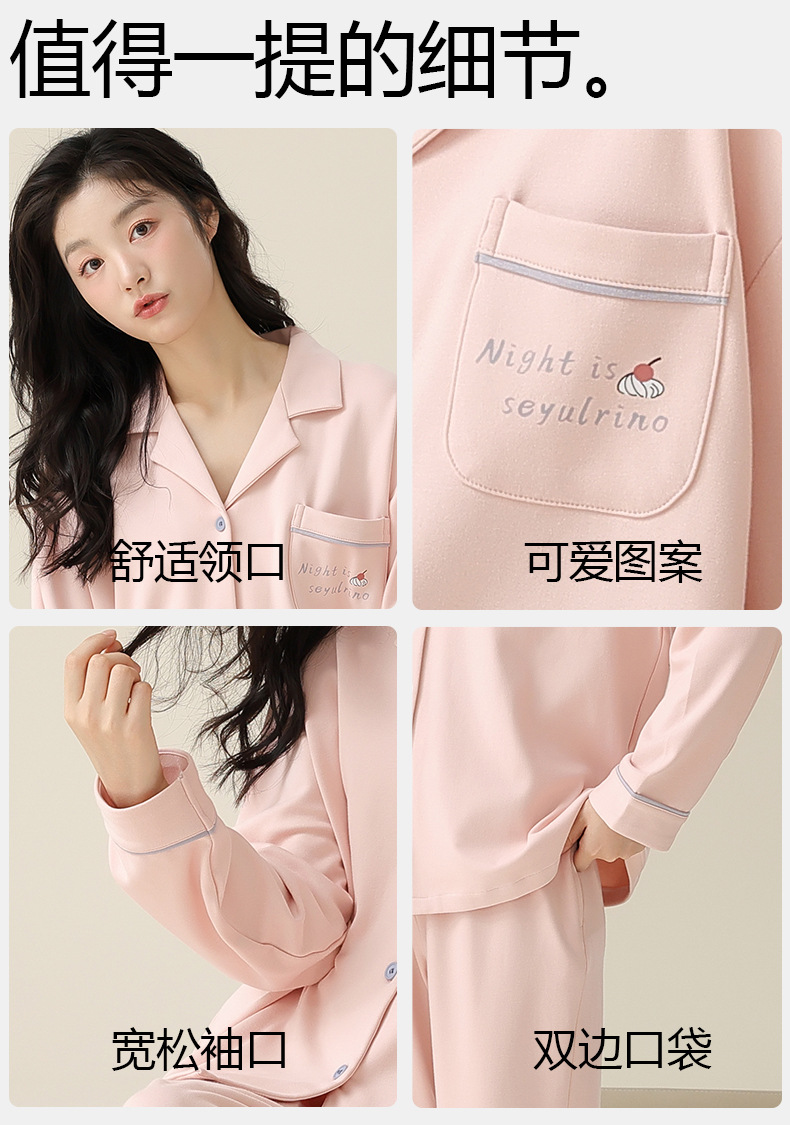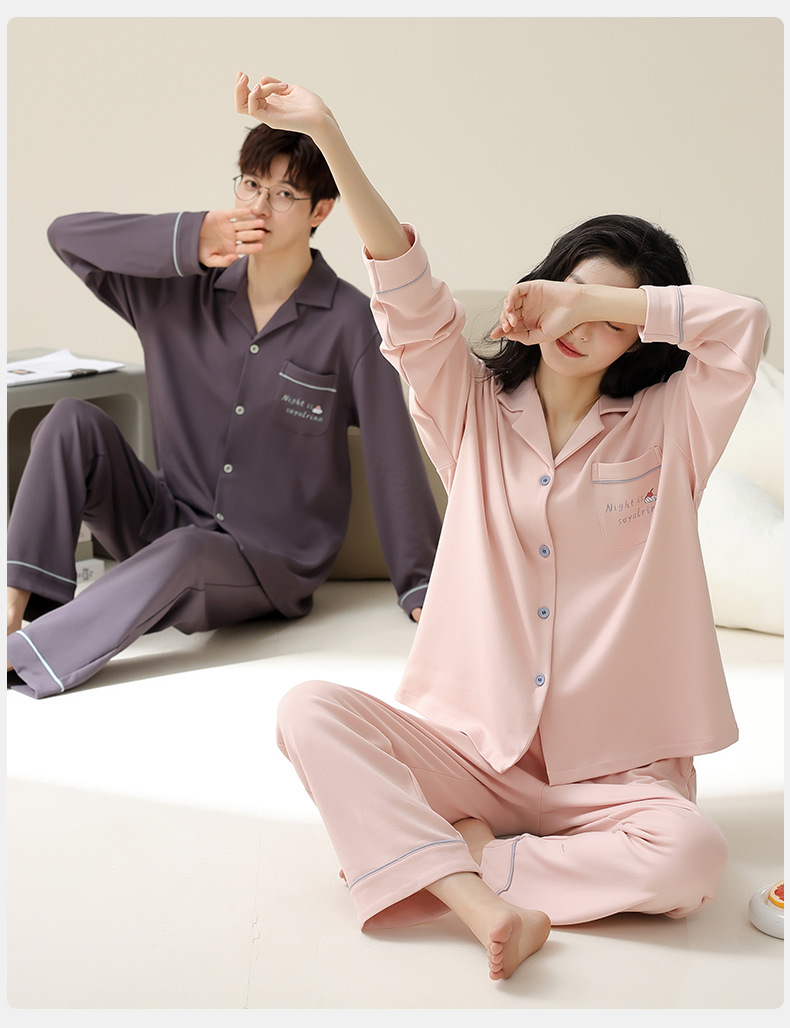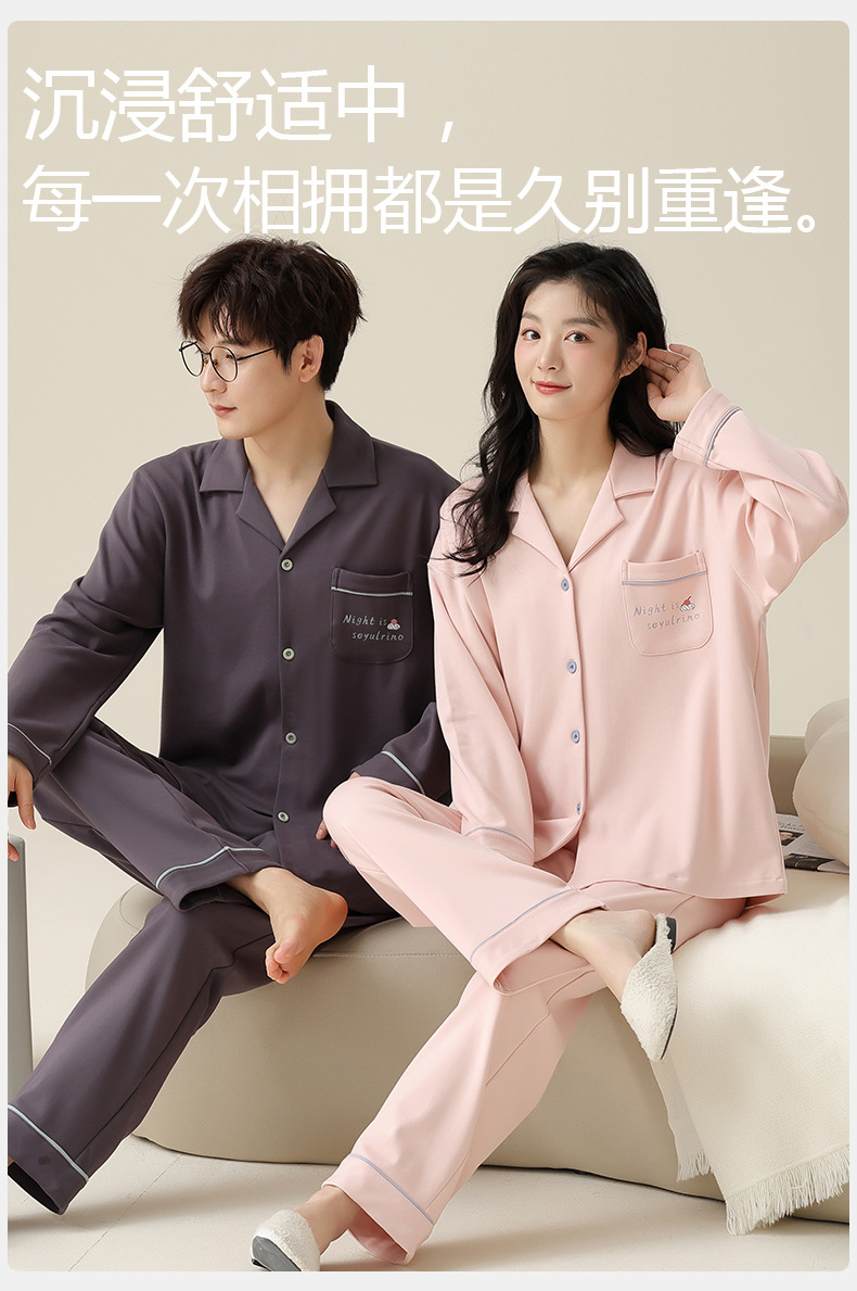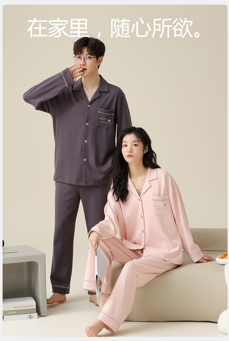 [순면] 커플 잠옷 봄, 가을, 겨울 긴팔 한 남자와 한 여자 달콤한 코튼 캐주얼 스타일 홈웨어 세트스토어 가기