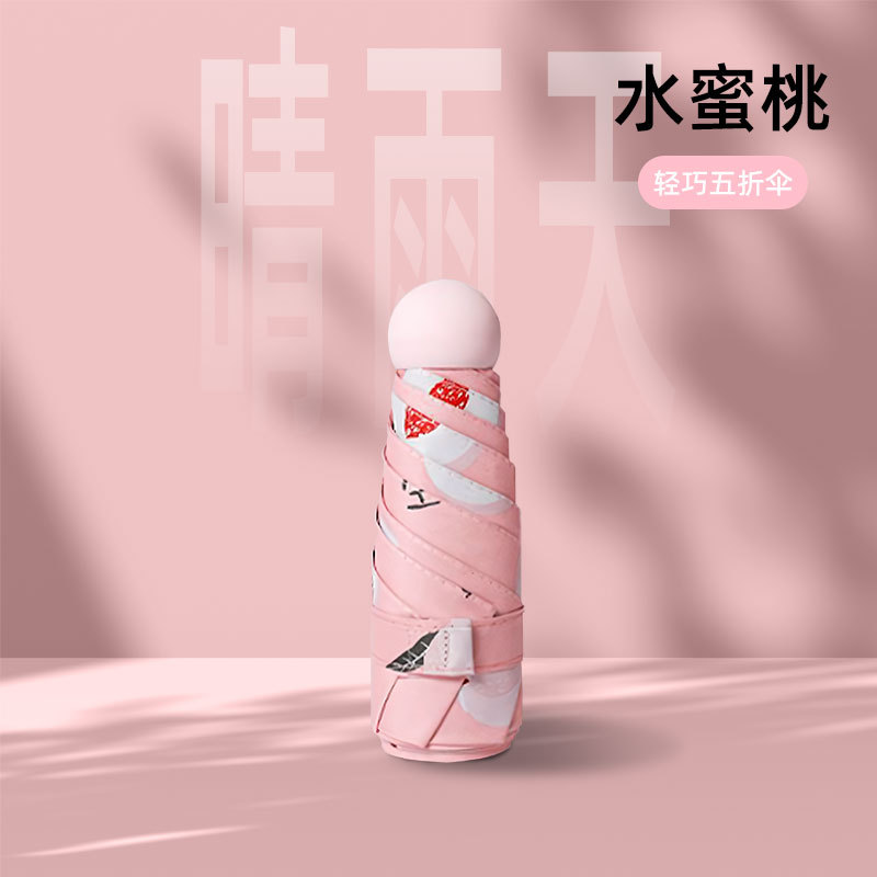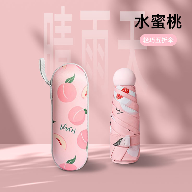 • 반 접힌 반 음영 태양 우산 6 뼈 과일-복숭아 캡슐 상자