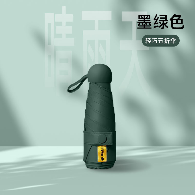 • 5 배 6 뼈 단색 태양 우산-다크 그린 캡슐 상자