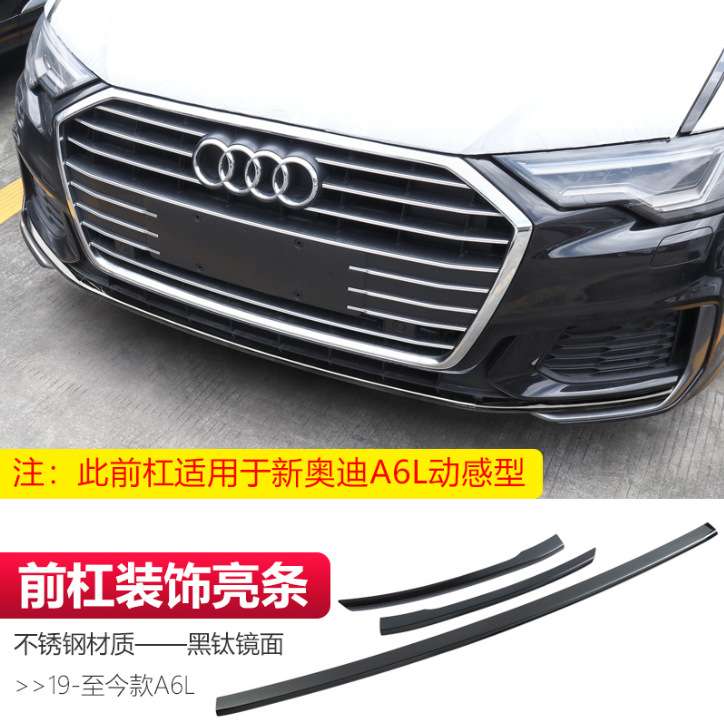 • 19-24 아우디 A6L - 스테인레스 스틸 소재 - 프론트 범퍼 장식 브라이트 스트립 - 블랙 티타늄 미러 (다이나믹 타입 3종 세트)