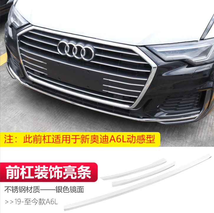 • 19-24 아우디 A6L - 스테인리스 스틸 소재 - 프론트 범퍼 장식 몰딩 - 실버 미러 (다이나믹 타입 3종 세트)