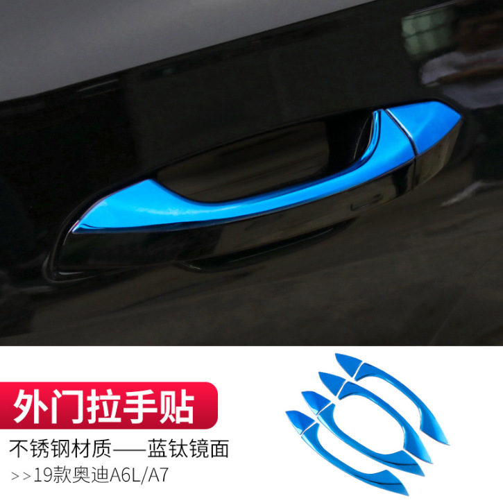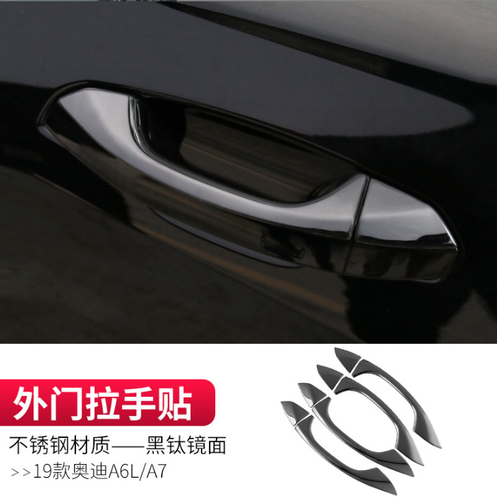 • 19-24 아우디 A6L.A7-스테인리스 소재-외부 도어 핸들 스티커-블랙 티타늄 미러(8개 세트)
