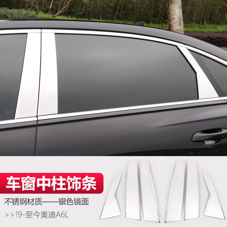 • 19-24 아우디 A6L-스테인리스 소재-윈도우 센터 필러 트림-실버 미러(6개 세트)