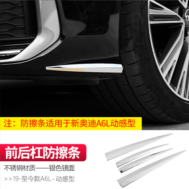 • 19-24 아우디 A6L-스테인리스 소재-전면 및 후면 범퍼 긁힘 방지 스트립-실버 미러(다이나믹 타입)