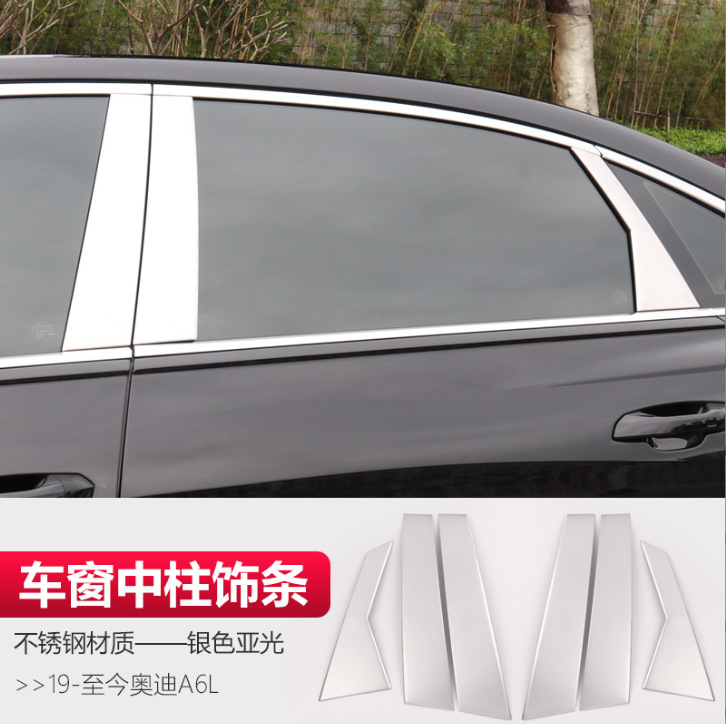 • 19-24 아우디 A6L-스테인리스 소재-윈도우 센터 필러 트림-실버 매트(6개 세트)