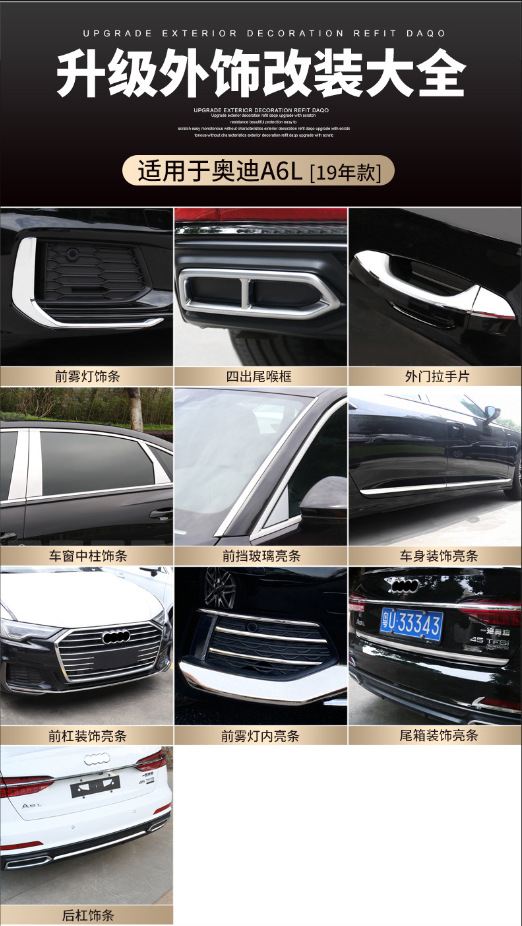 19-25년형 아우디 A6L 외부 튜닝용 프론트 범퍼, 리어 범퍼, 외부 핸들, 차체 장식용 브라이트 스트립, 다이나믹 타입에 적합합니다.스토어 가기