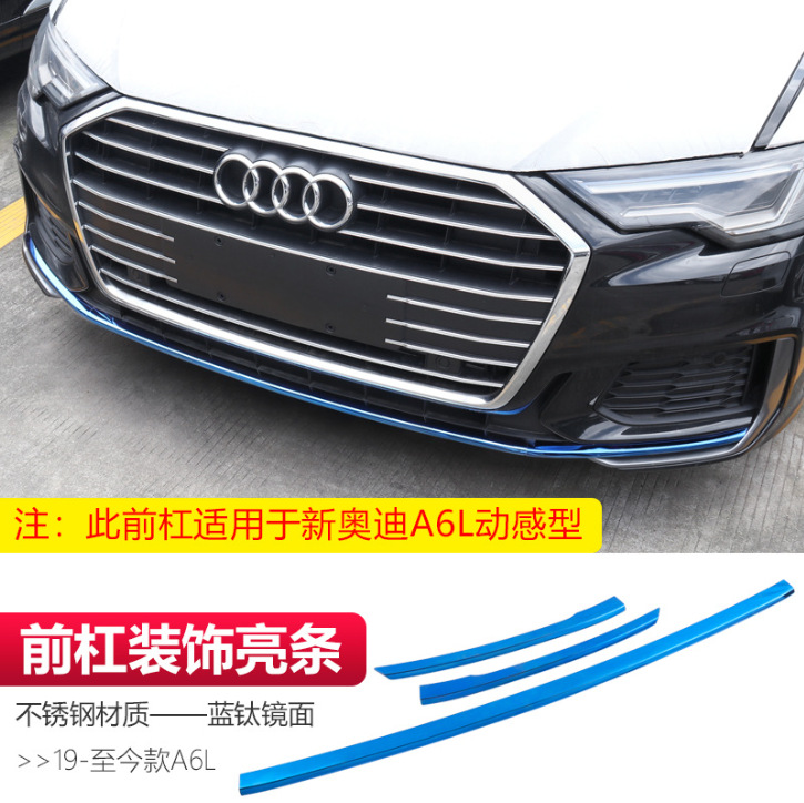 • 19-24 아우디 A6L-스테인리스 소재-프론트 범퍼 장식 브라이트 스트립-블루 티타늄 미러(다이나믹 타입 3종 세트)
