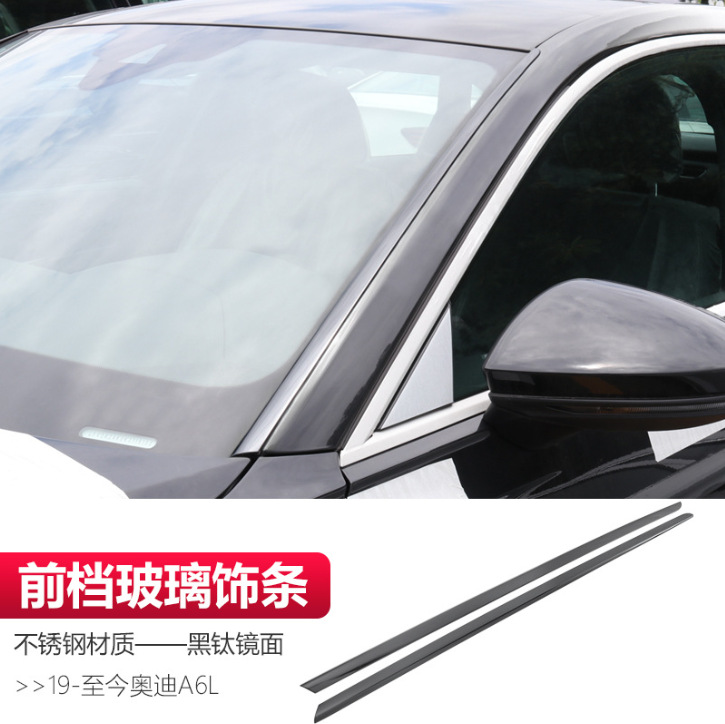 • 19-24 아우디 A6L-스테인리스 스틸 소재-전면 유리 트림-블랙 티타늄 미러(1쌍)