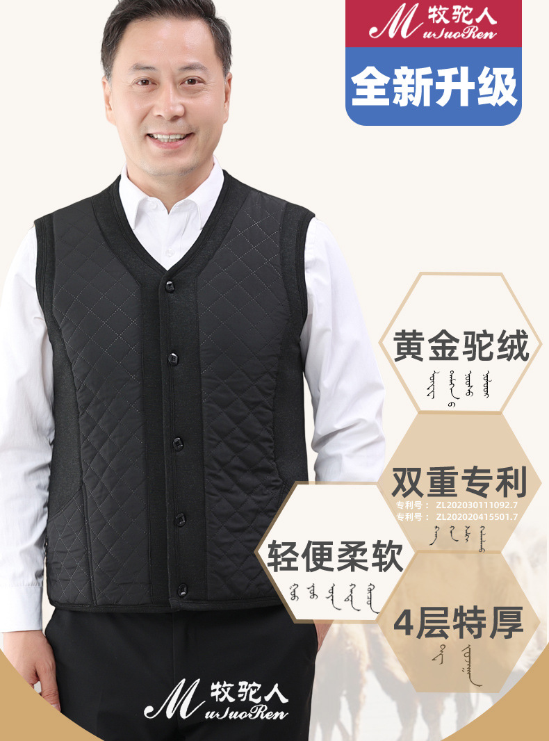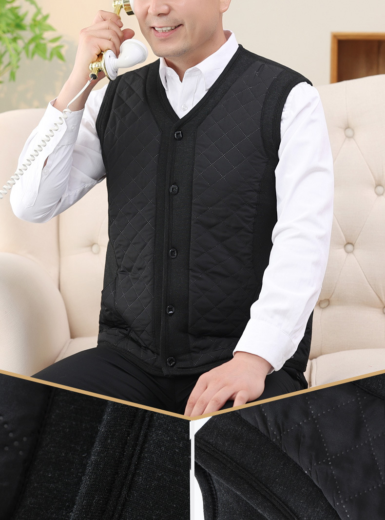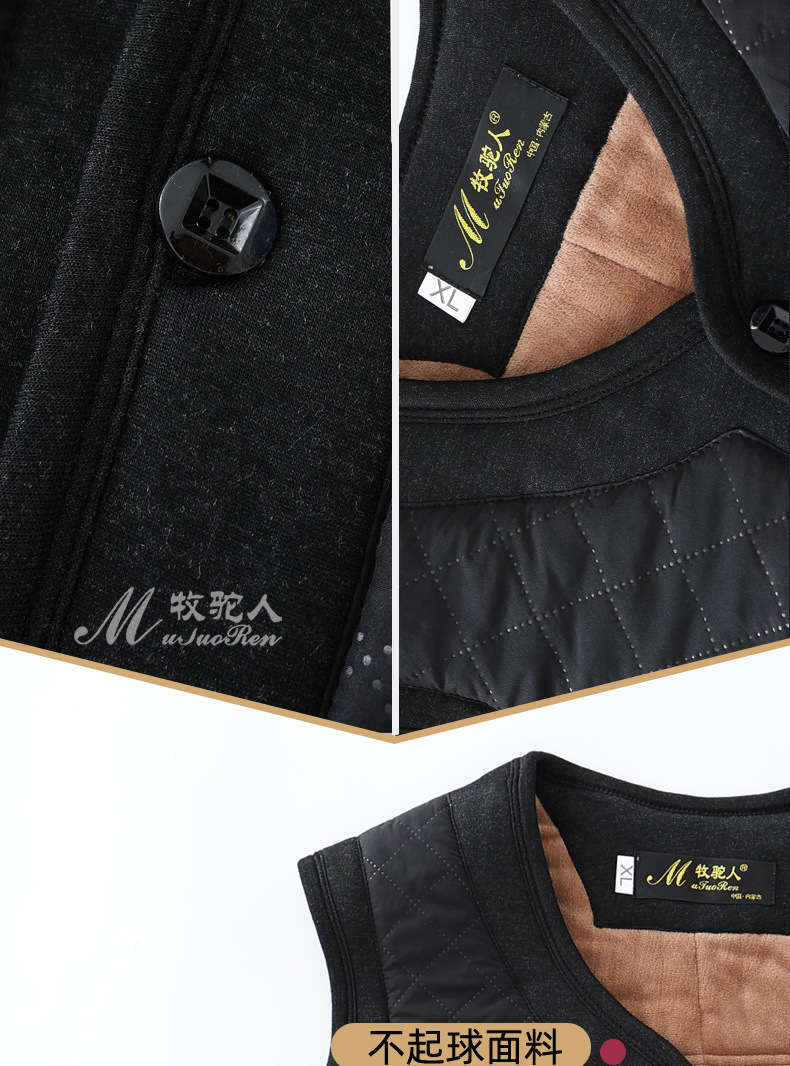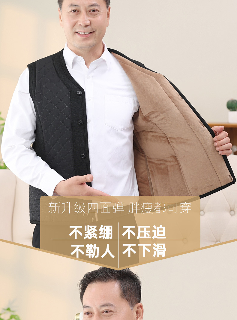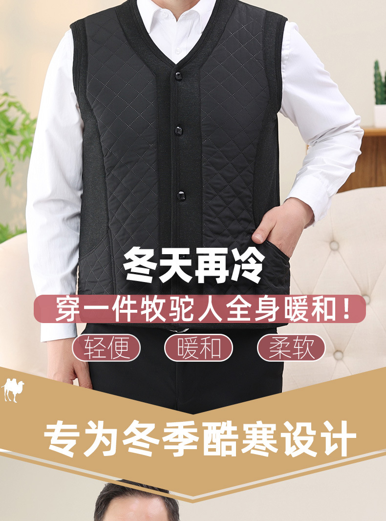 중년 및 노인 남자의 카멜 면 조끼 아빠의 두꺼운 따뜻한 조끼 조끼 노인 홈 플러스 사이즈 기모