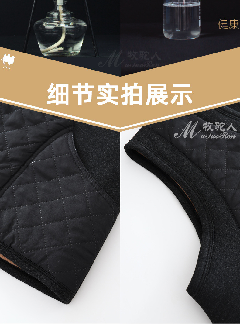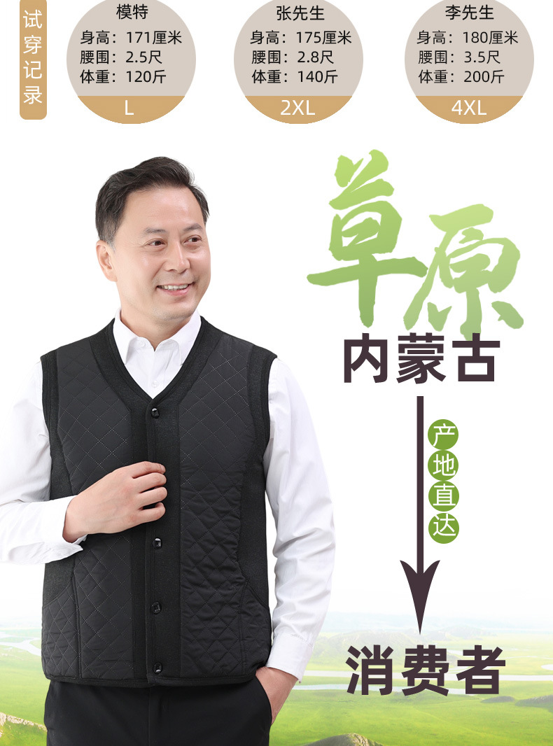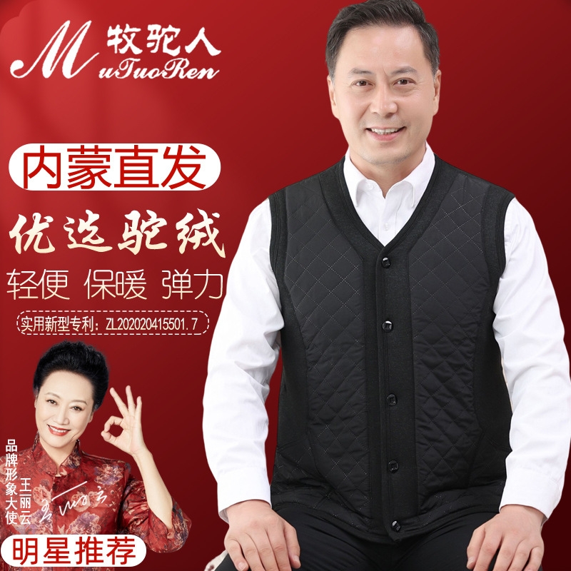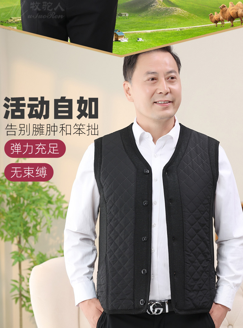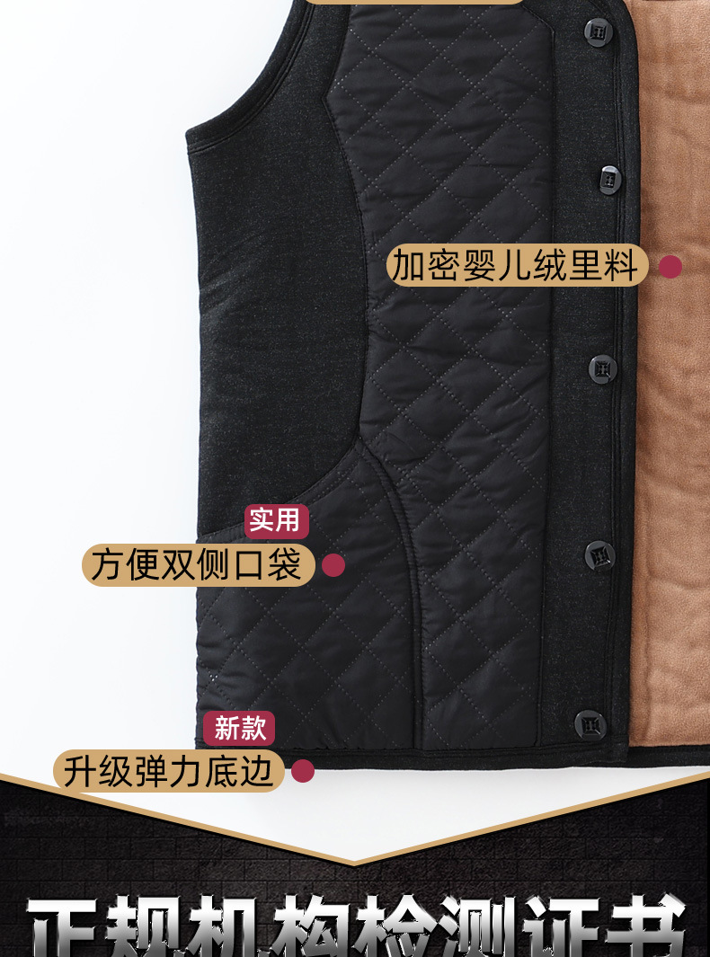 중년 및 노인 남자의 카멜 면 조끼 아빠의 두꺼운 따뜻한 조끼 조끼 노인 홈 플러스 사이즈 기모