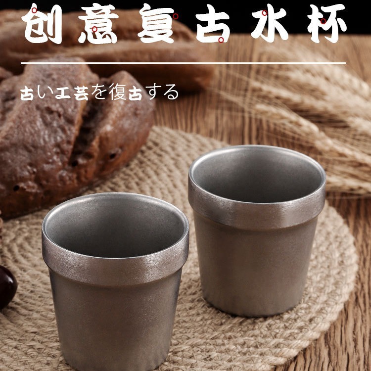 레트로 레트로 304 스테인레스 스틸 워터 컵 더블 레이어 안티 스케일 눈송이 그레이 상업용 맥주 컵 음료 컵 다이닝 컵스토어 가기