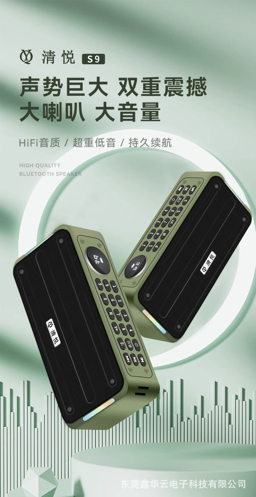새로운 Qingyue S9 Loud King 휴대용 야외 광장 블루투스 스피커 다기능 카드 라디오 서브 우퍼