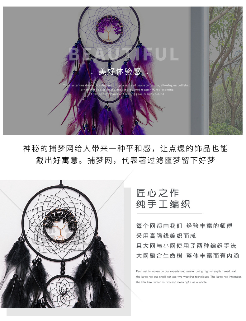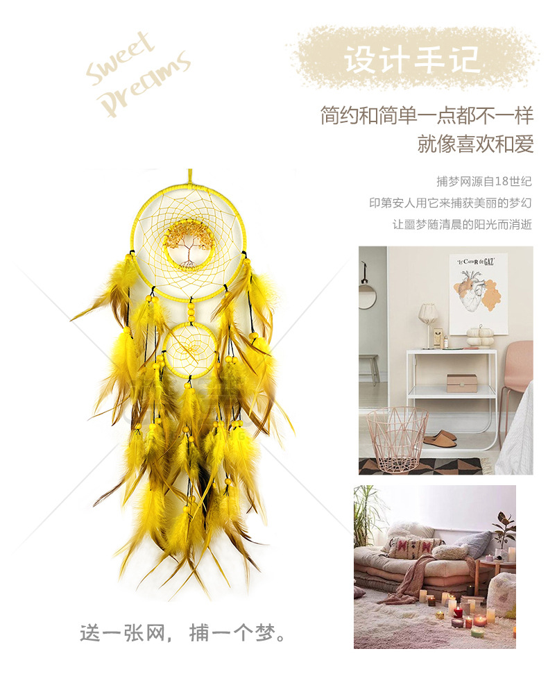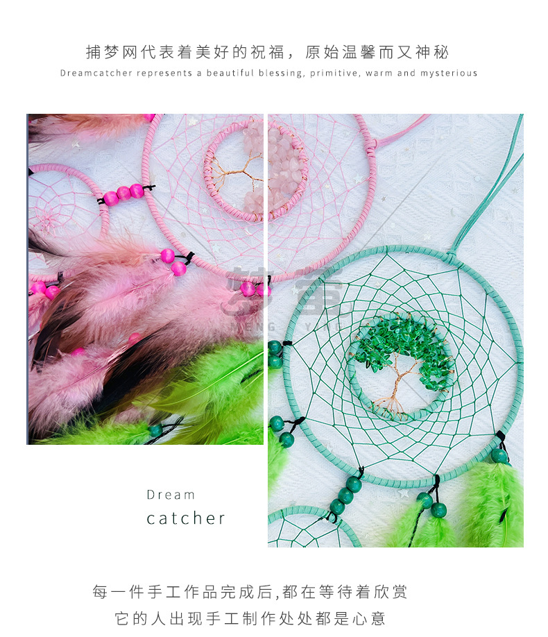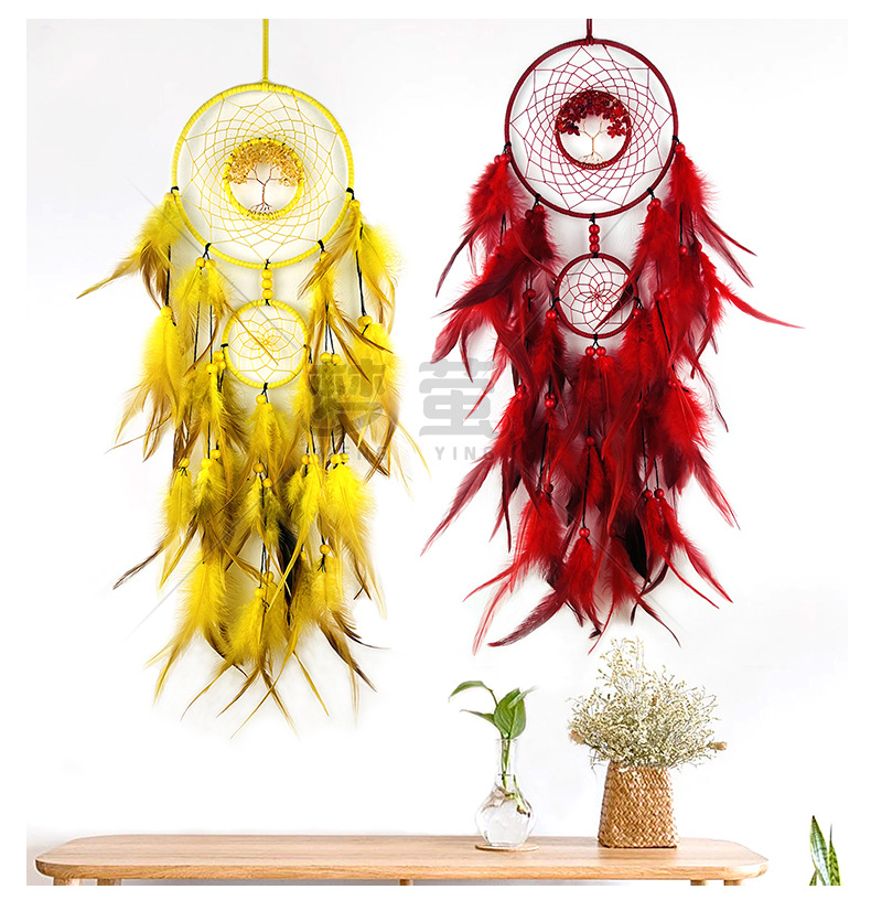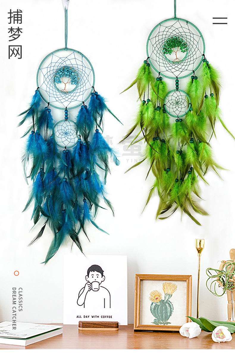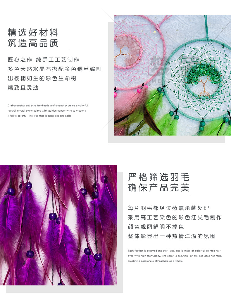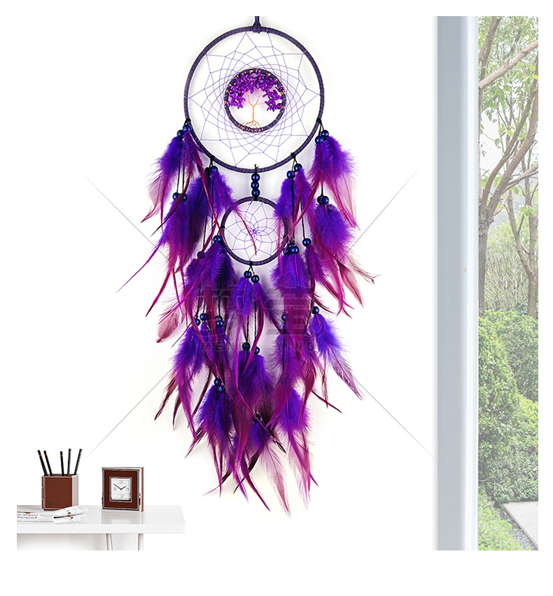 [드림 반딧불] 인디언 깃털 드림 캐쳐 다채로운 크리스탈 스톤 손으로 짠 바람 차임 창조적 인 공예품 완제품스토어 가기