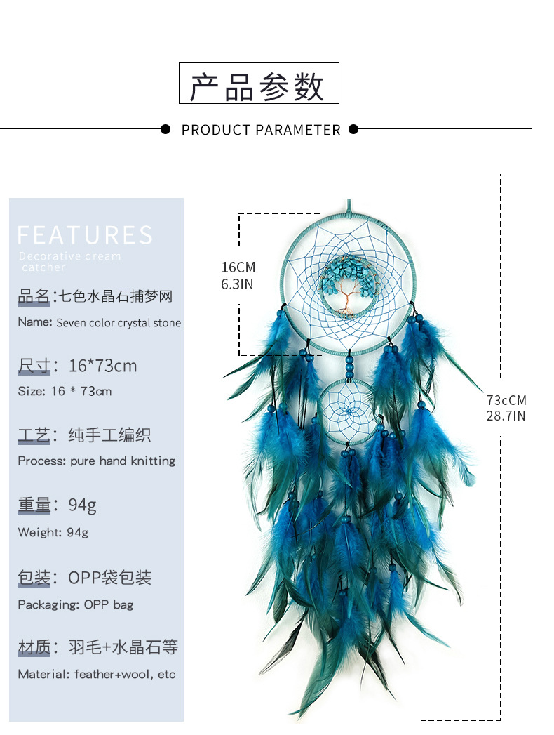 [드림 반딧불] 인디언 깃털 드림 캐쳐 다채로운 크리스탈 스톤 손으로 짠 바람 차임 창조적 인 공예품 완제품
