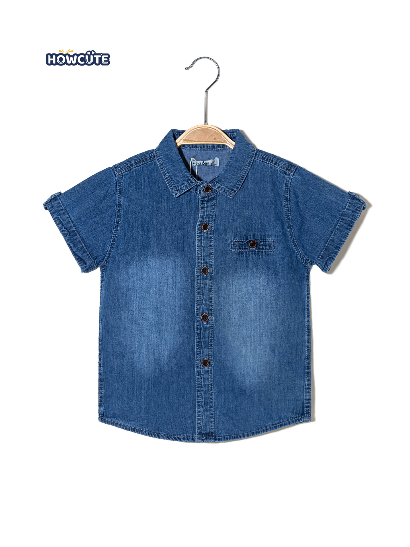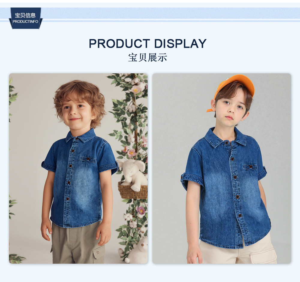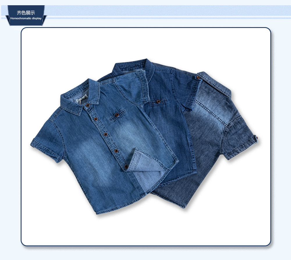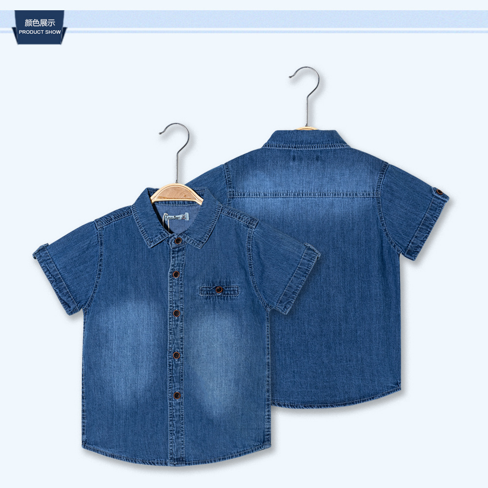 HC 코튼 데님 셔츠 대외 무역 공장 여름 다목적 캐주얼 짧은 셔츠 어린이 하이 퀄리티 데님 반팔 셔츠