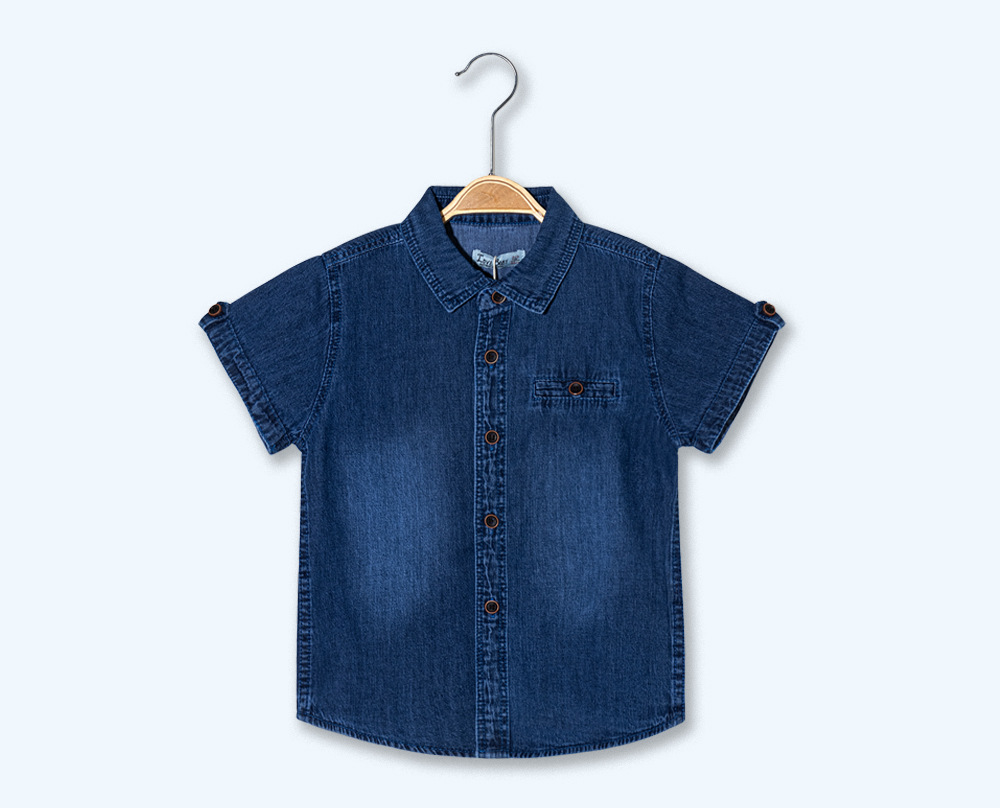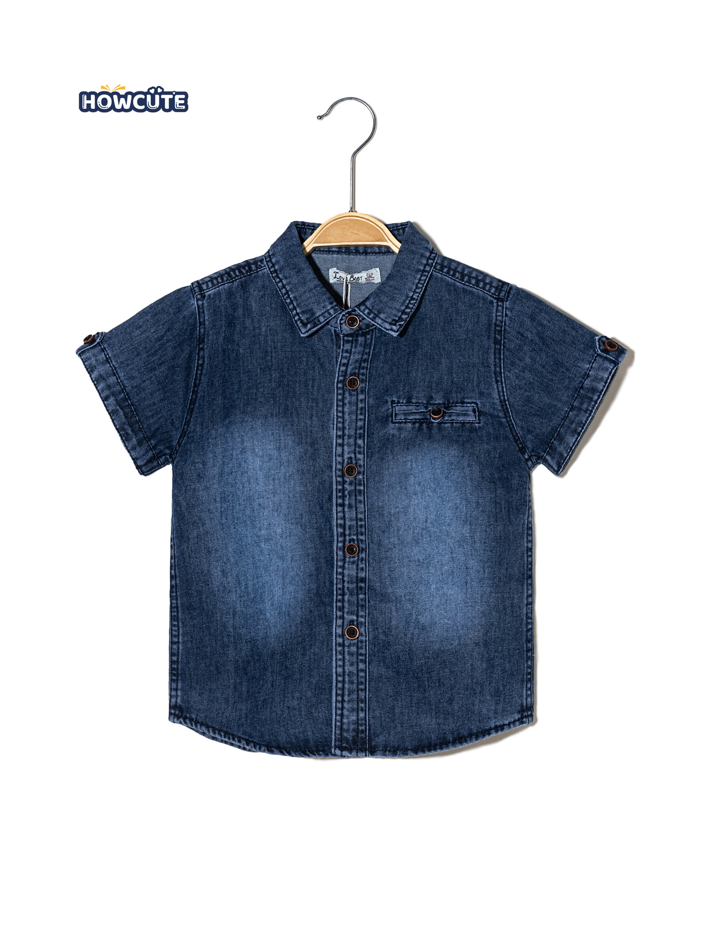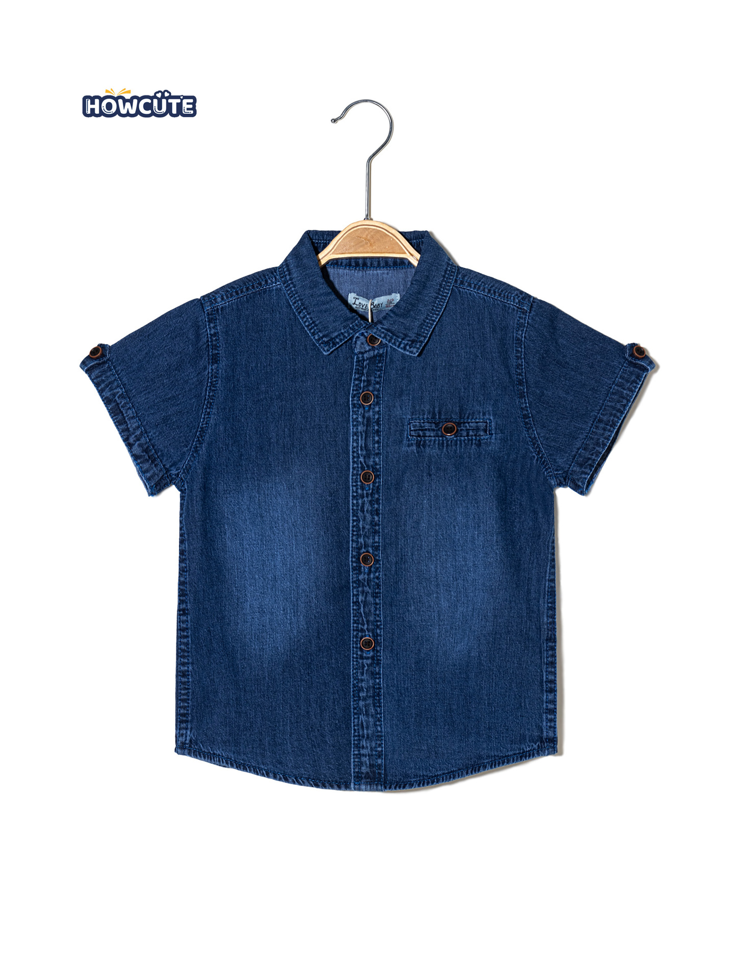 HC 코튼 데님 셔츠 대외 무역 공장 여름 다목적 캐주얼 짧은 셔츠 어린이 하이 퀄리티 데님 반팔 셔츠