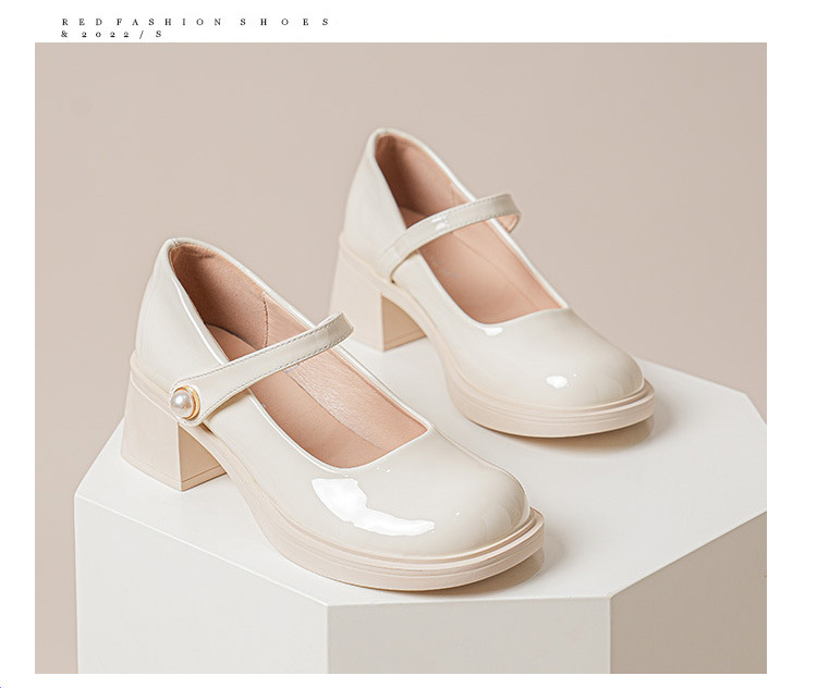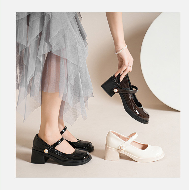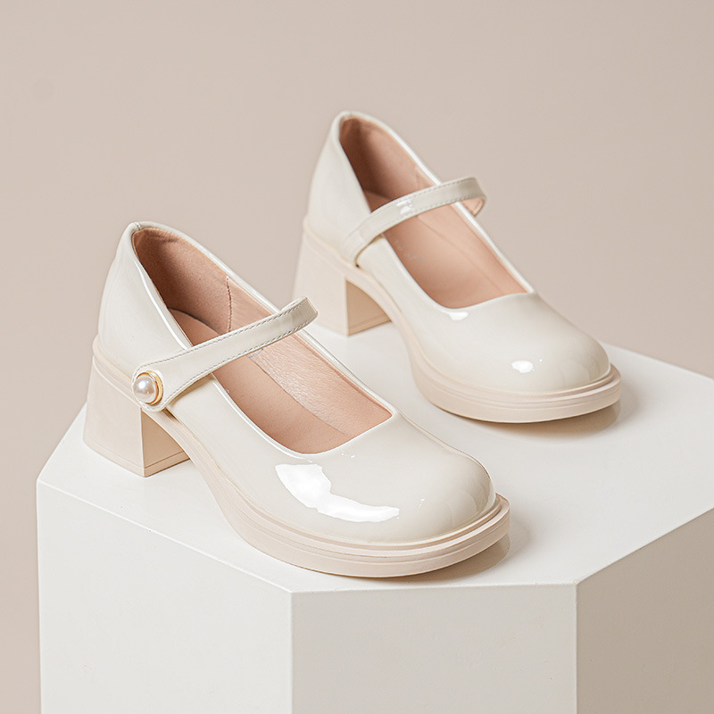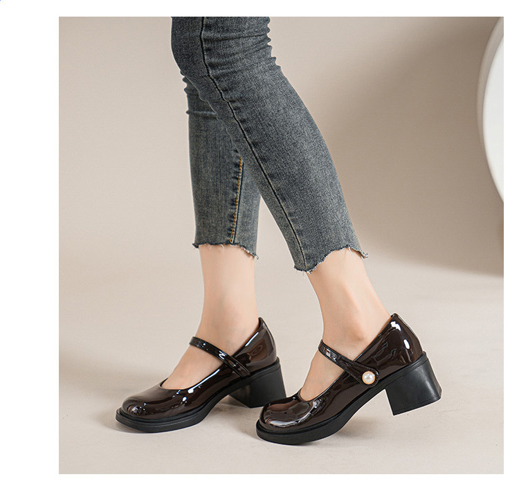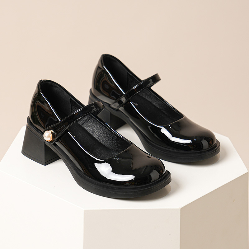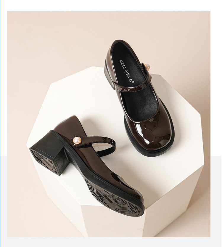스몰 사이즈 고층 프렌치 빅 토 청키 힐 하이힐 여성용 jk 이브닝 브리즈 메리 제인 신발과 작은 가죽 신발스토어 가기