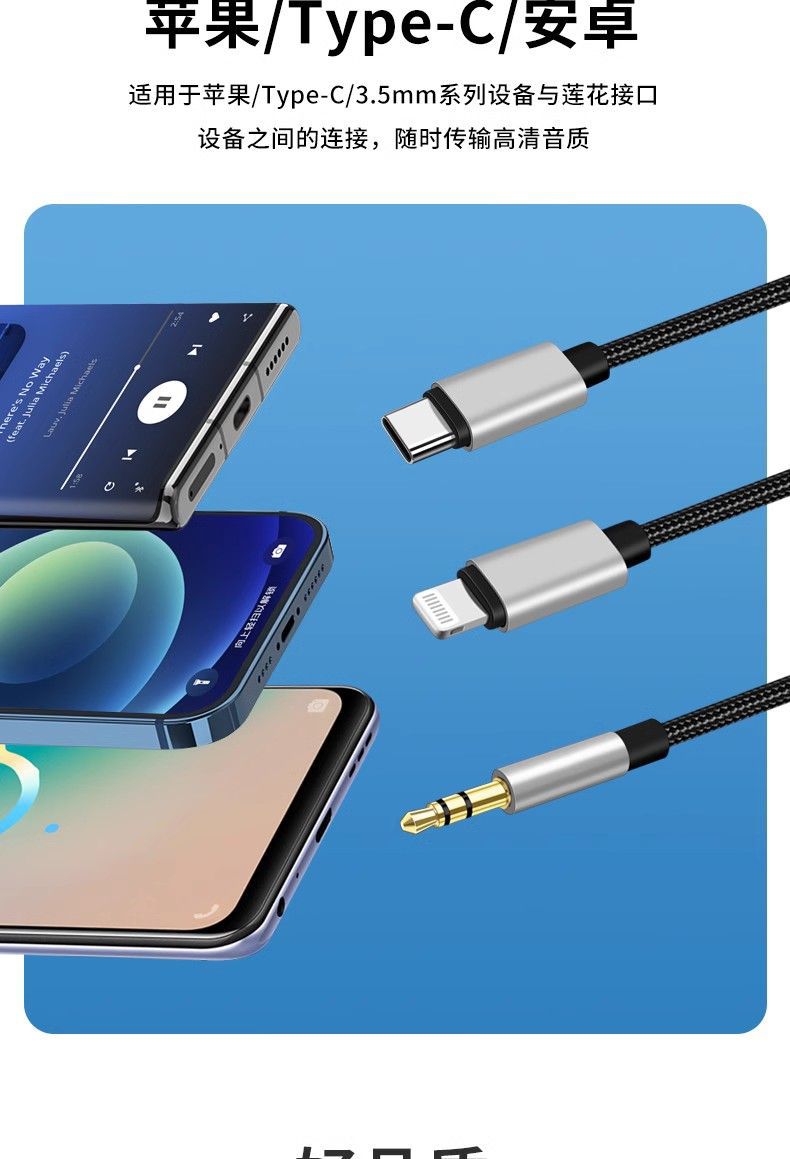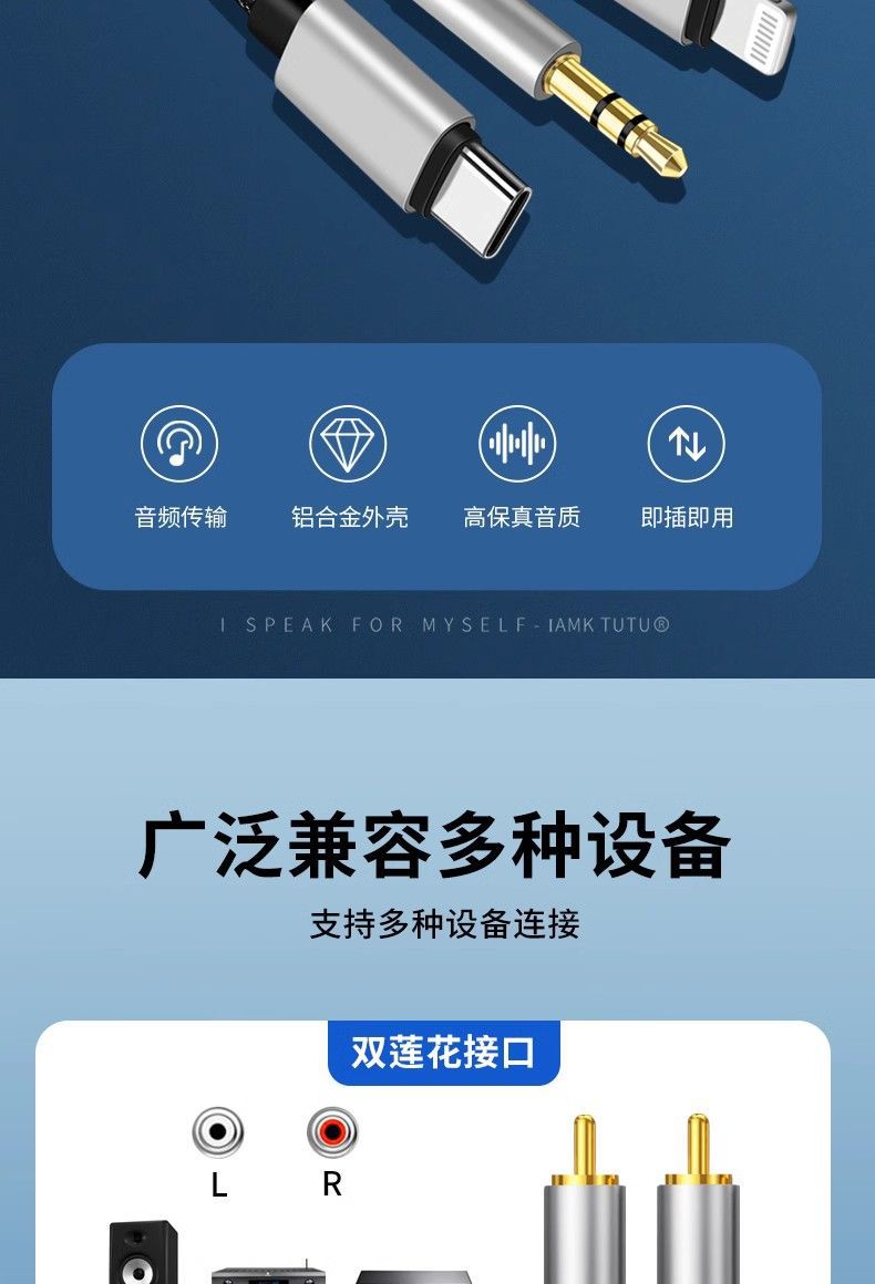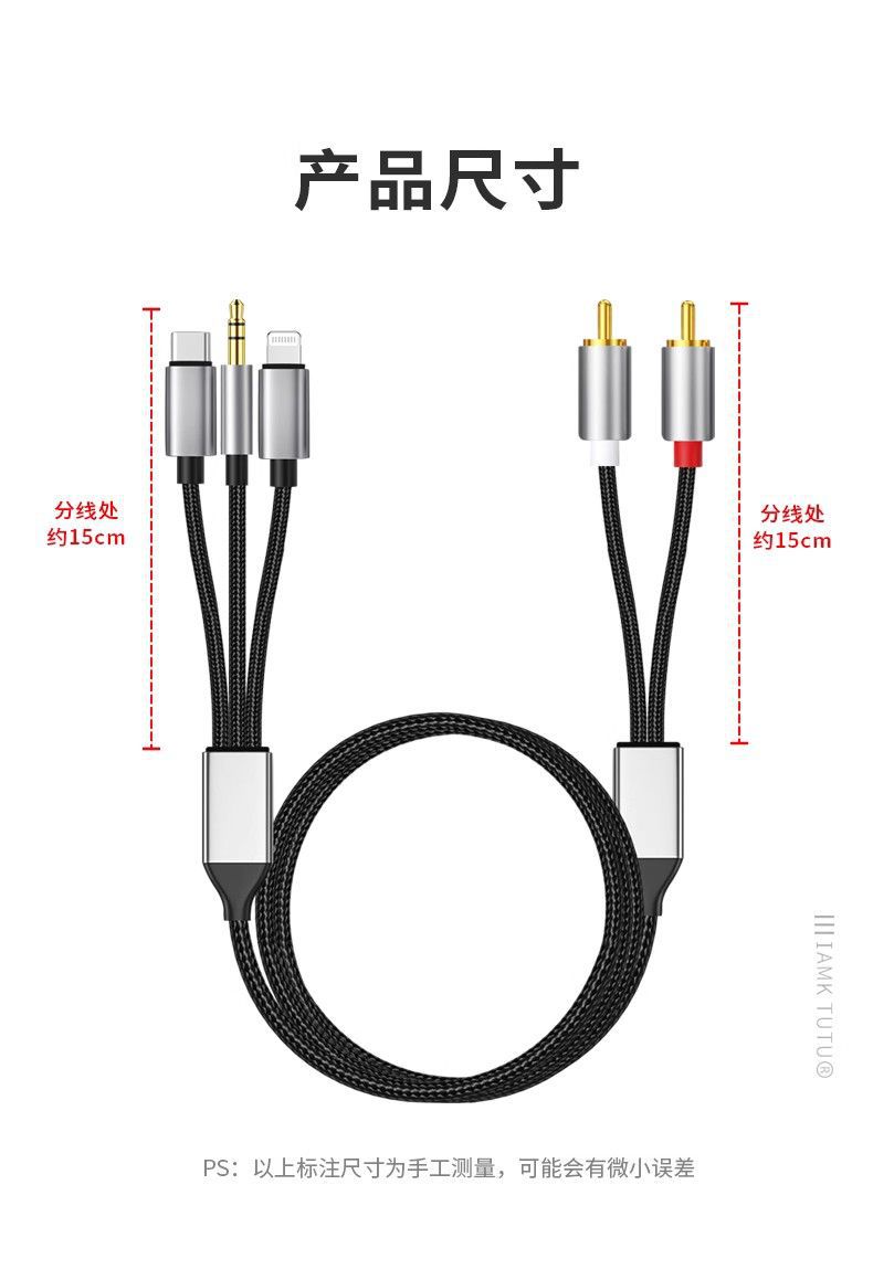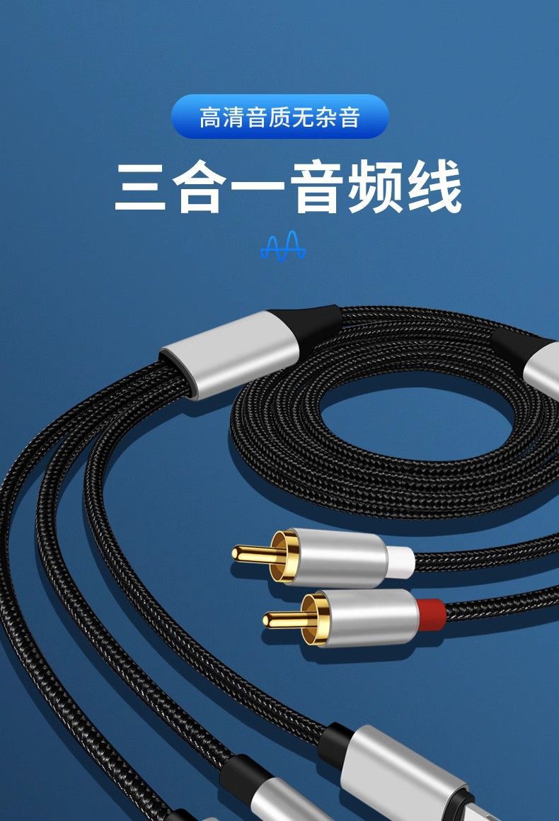 듀얼 로터스 오디오 케이블 라이트닝 휴대폰 3-in-1 타입C 3.5mm RCA 어댑터 오디오 케이블