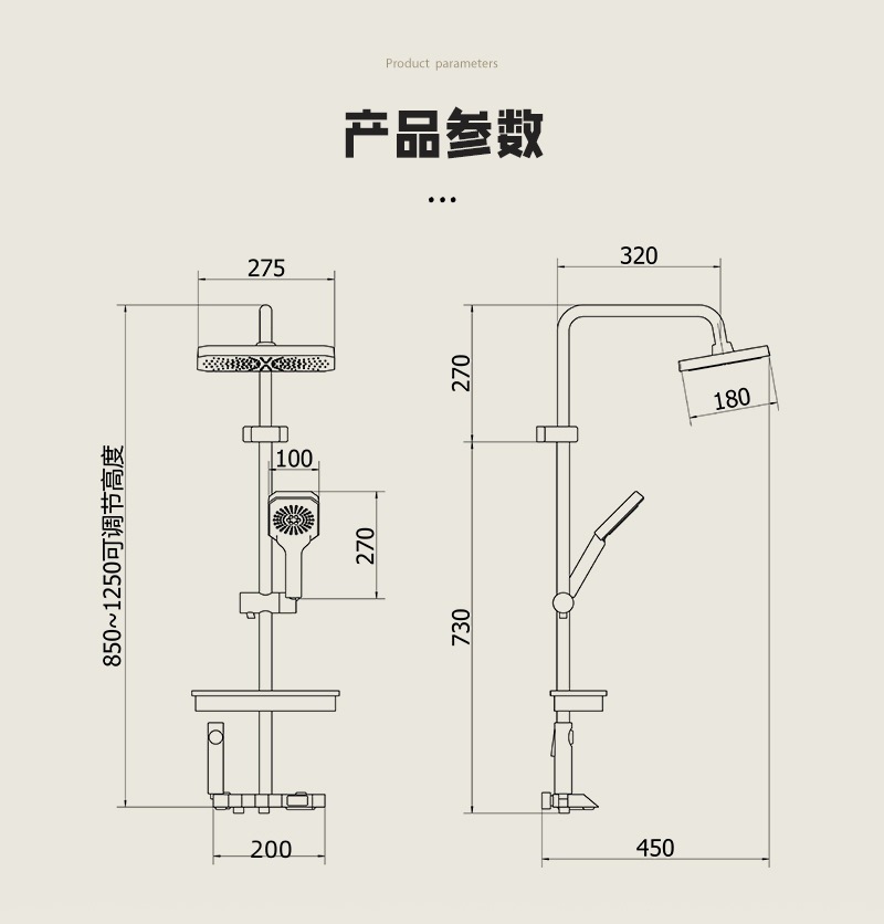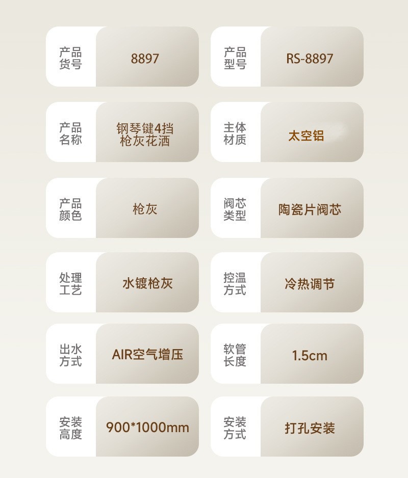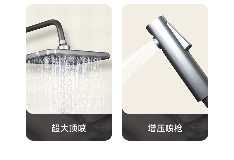 건메탈 색상 샤워기 세트 가정용 전체 구리 소재 욕실 피아노 버튼 샤워기 샤워 헤드