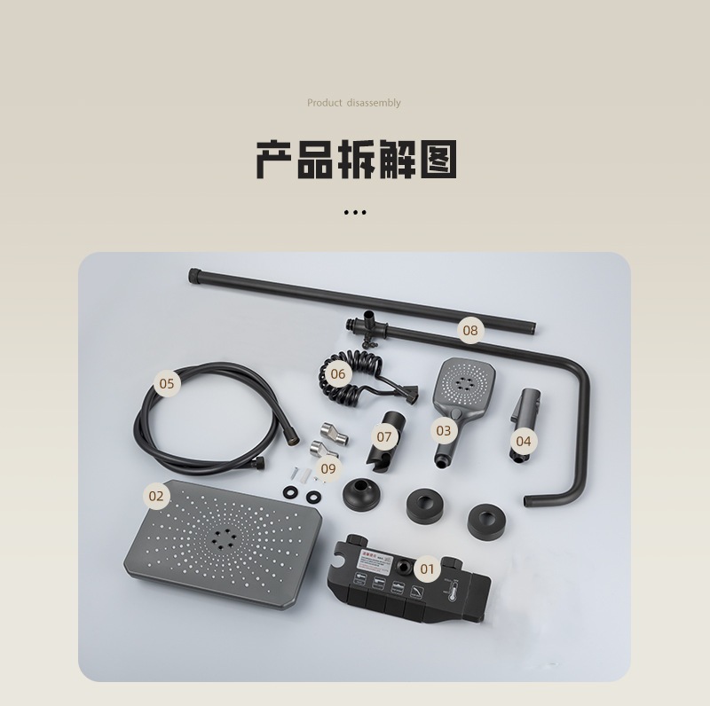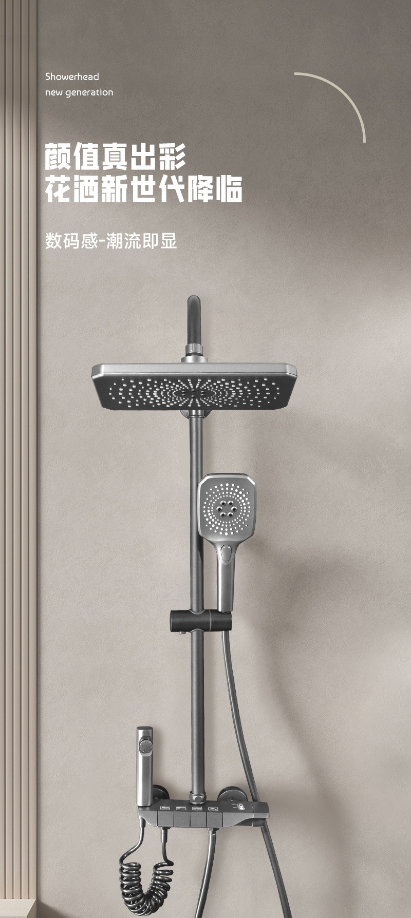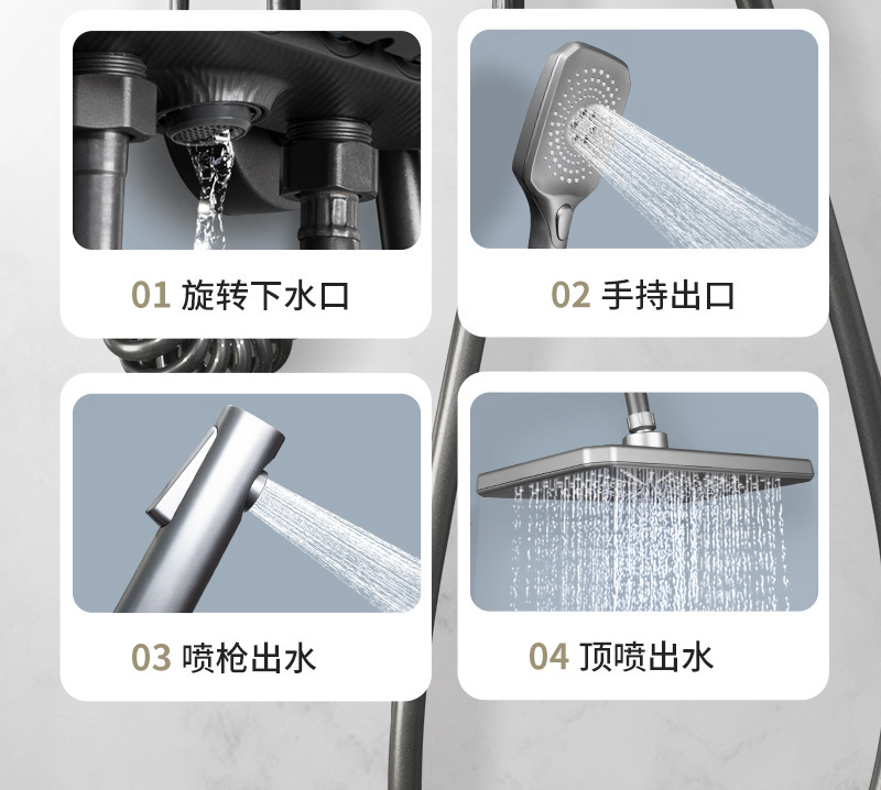 건메탈 색상 샤워기 세트 가정용 전체 구리 소재 욕실 피아노 버튼 샤워기 샤워 헤드스토어 가기