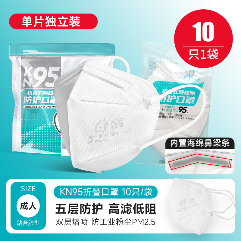 이안 KN95 일회용 방진 마스크 3D 입체 산업용 5중 보호 통기성 접이식 마스크