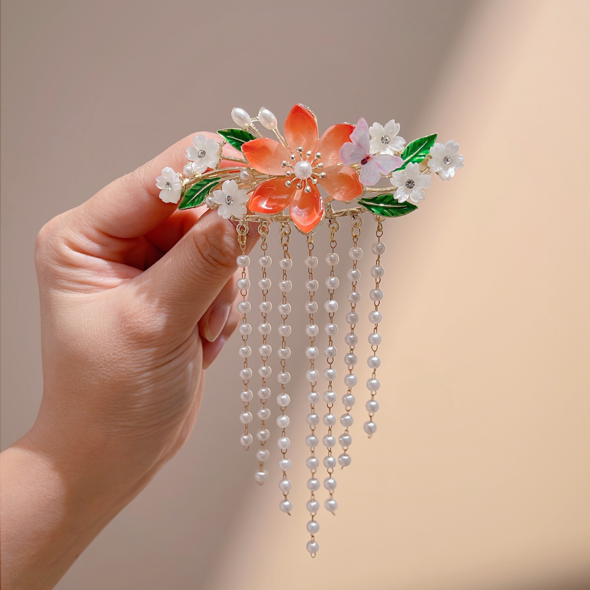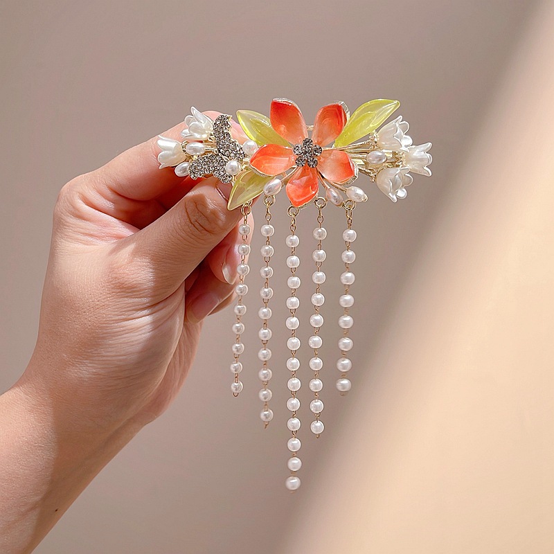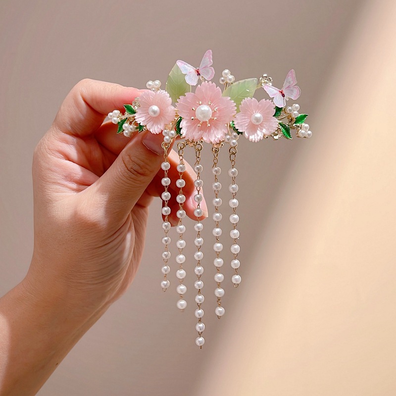 공장 직영 골동품 슈퍼 요정 패션 꽃 술 머리핀 한푸 치파오 액세서리 반 진주 머리핀 도매