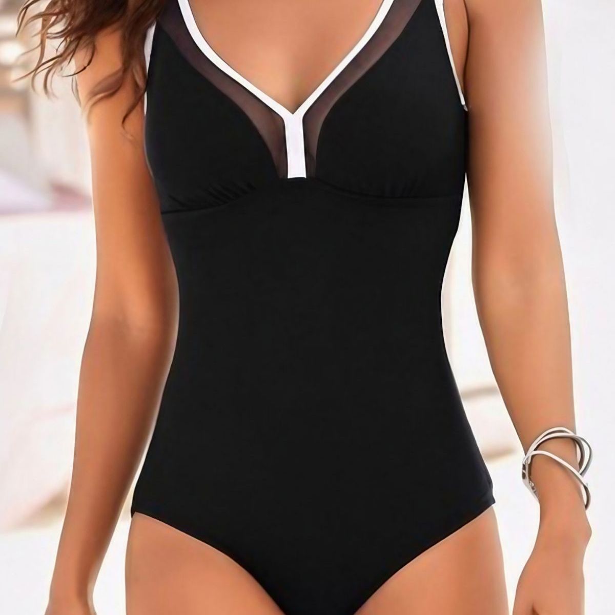 2023 유럽과 미국 꽉 섹시 단색 메쉬 배꼽 등이없는 수영복 비키니 플러스 사이즈
