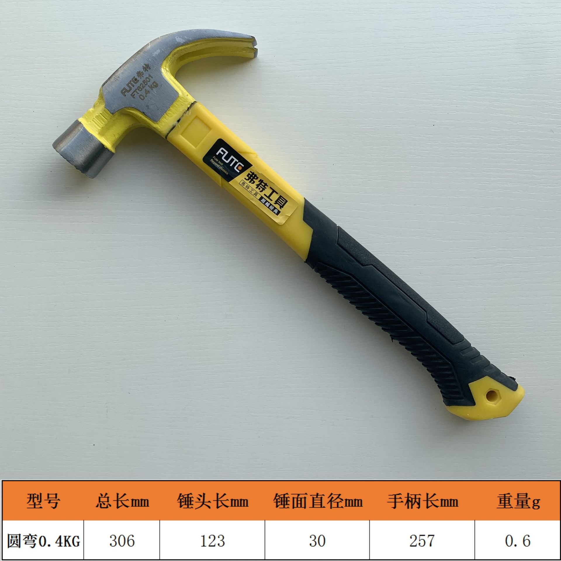 • FT62501 플라스틱 코팅 손잡이 미끄럼 방지 클로 해머 0.4kg 원형 곡선 0.6kg