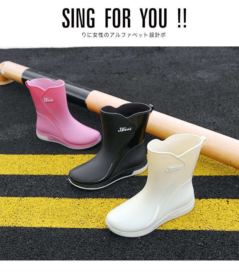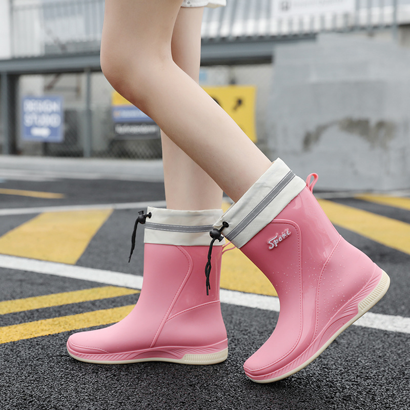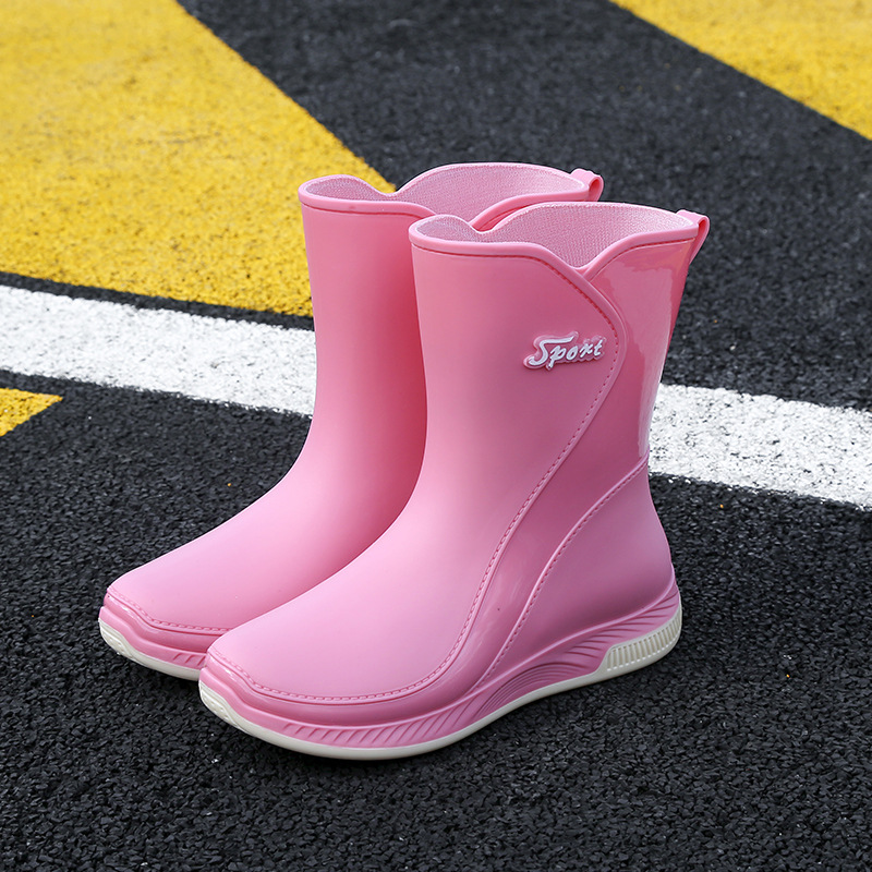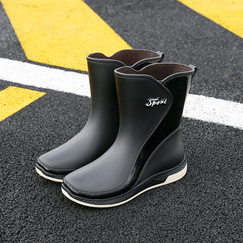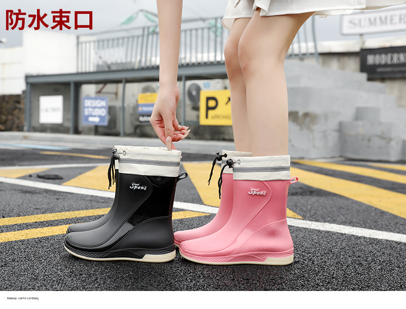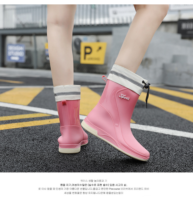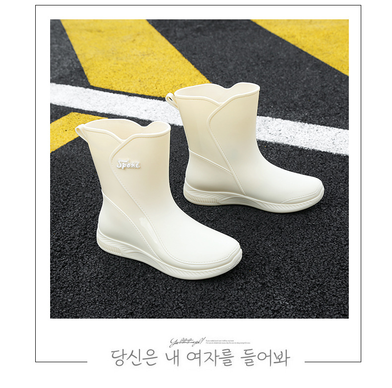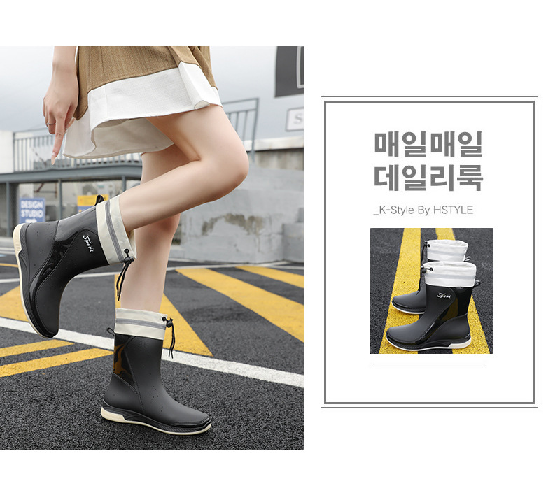 크로스 보더 패션 레인 부츠 여성용 중간 배럴 레인 부츠 두꺼운 밑창 미끄럼 방지 외부 고무 신발 방수 야외 낚시 세차 물 신발 여성스토어 가기