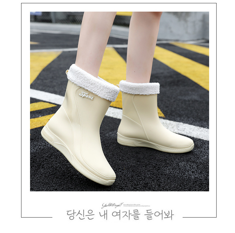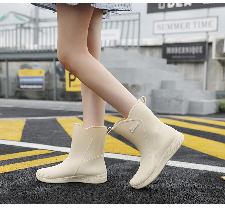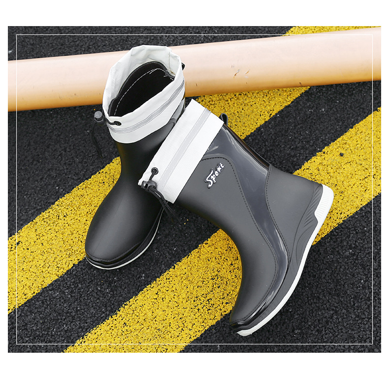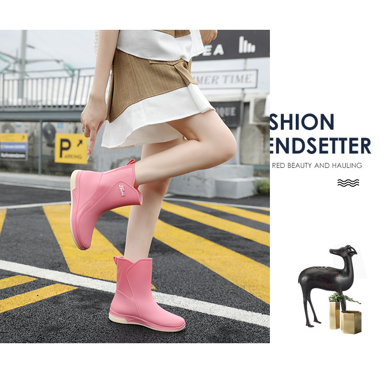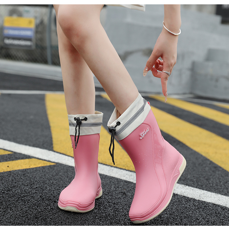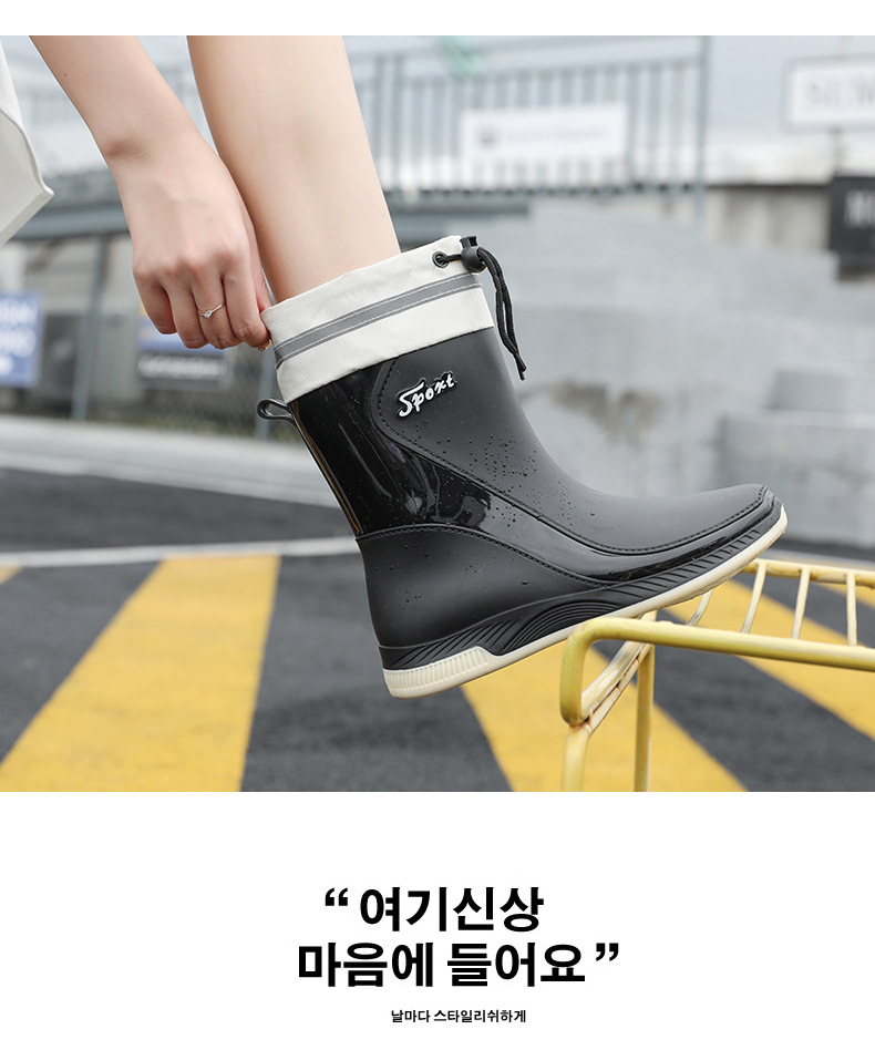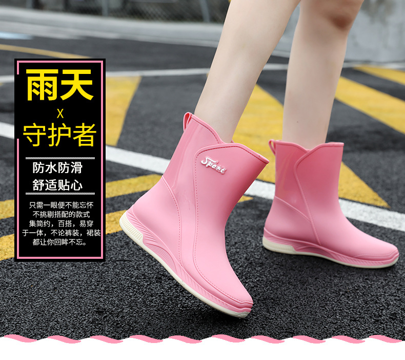 크로스 보더 패션 레인 부츠 여성용 중간 배럴 레인 부츠 두꺼운 밑창 미끄럼 방지 외부 고무 신발 방수 야외 낚시 세차 물 신발 여성스토어 가기