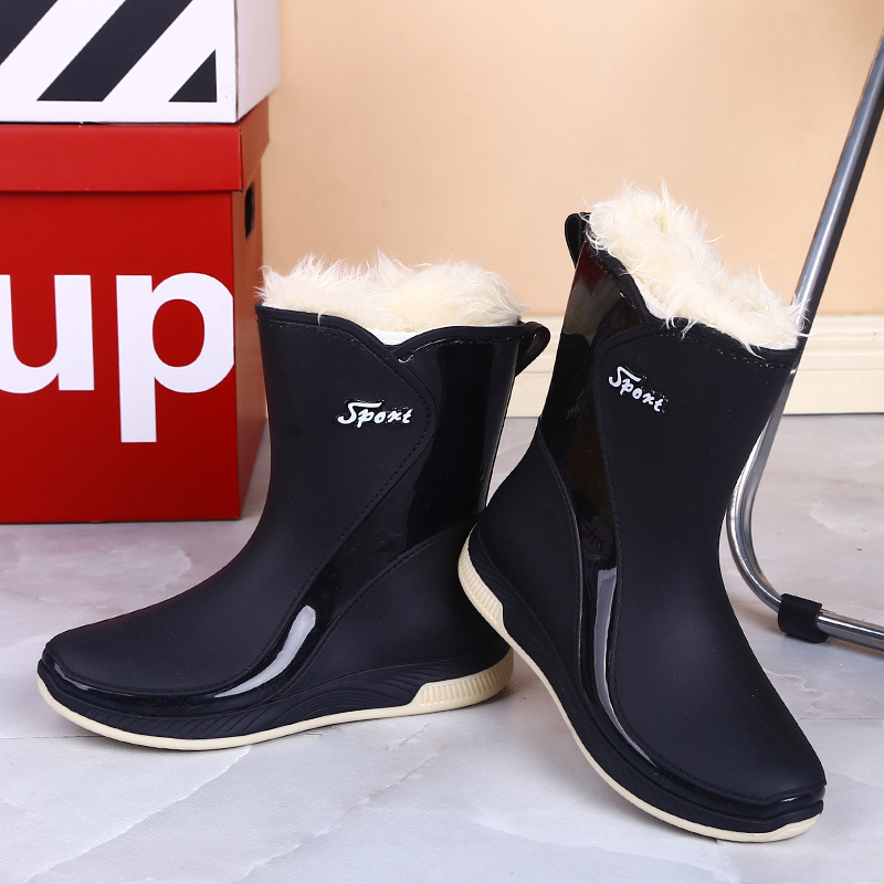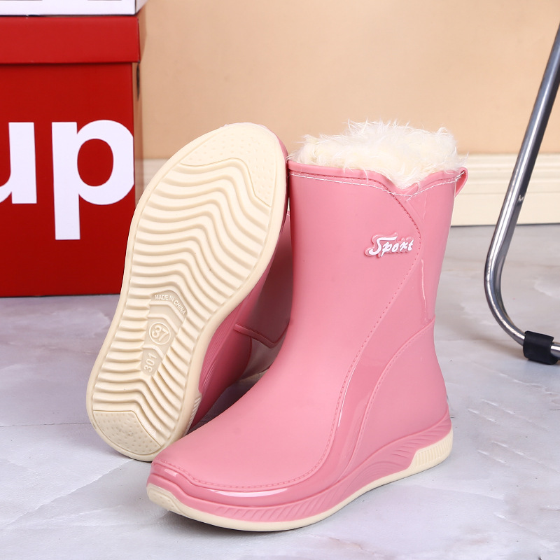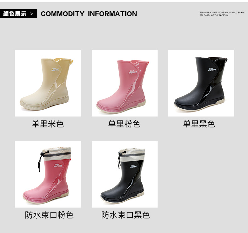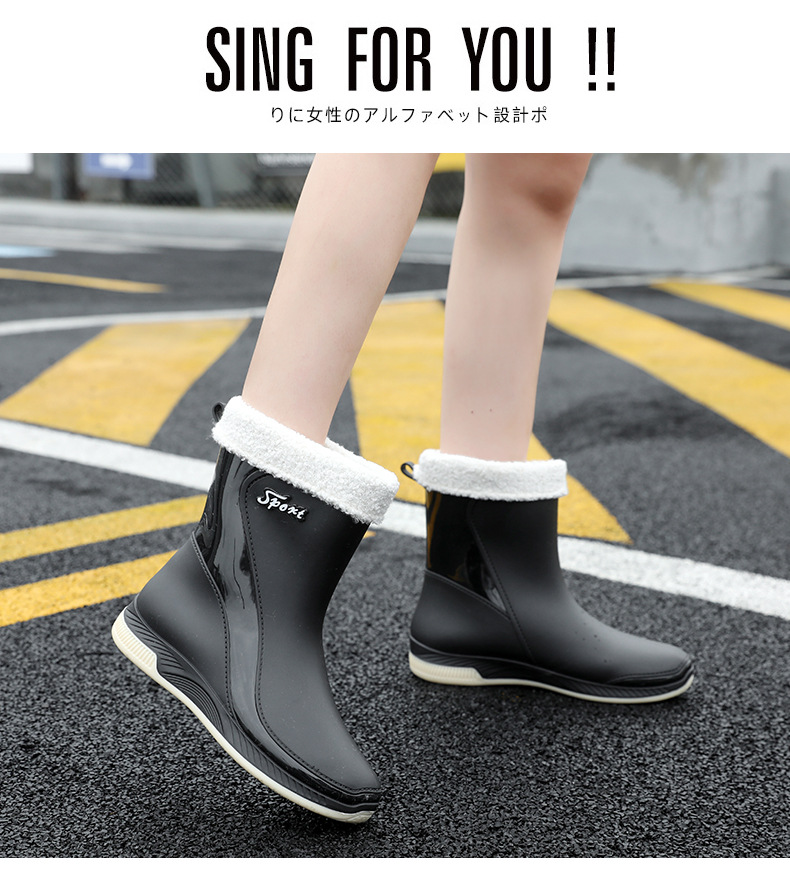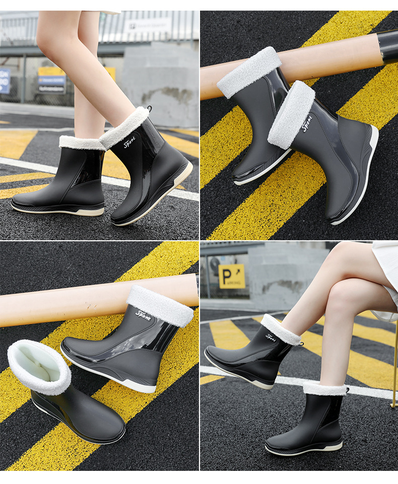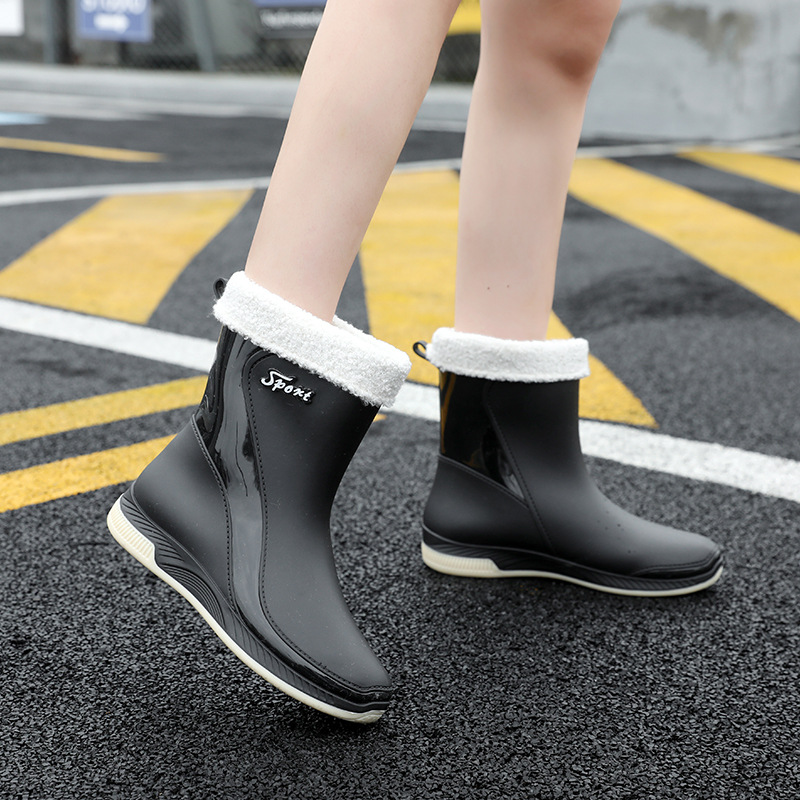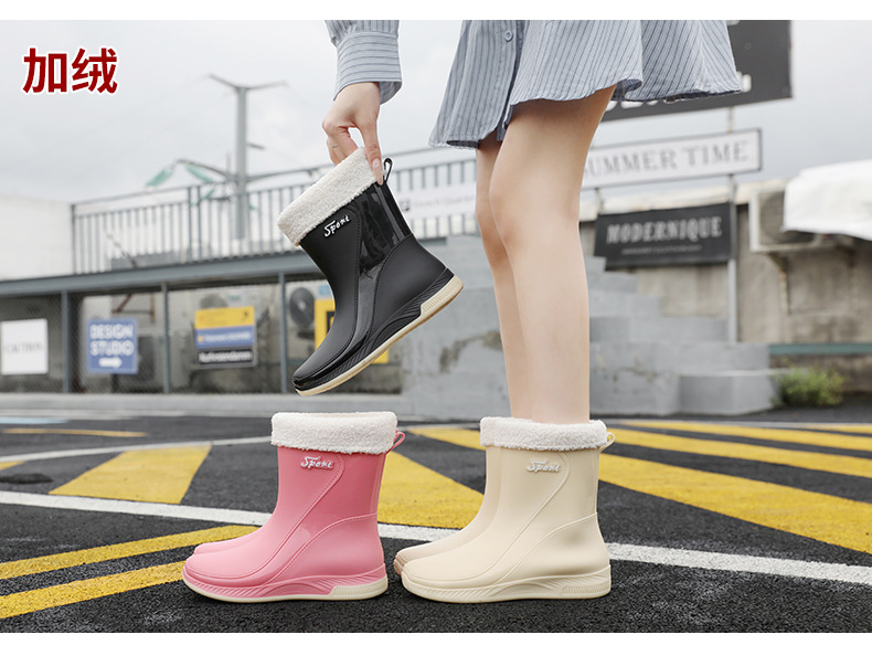 크로스 보더 패션 레인 부츠 여성용 중간 배럴 레인 부츠 두꺼운 밑창 미끄럼 방지 외부 고무 신발 방수 야외 낚시 세차 물 신발 여성스토어 가기