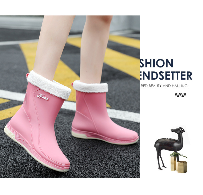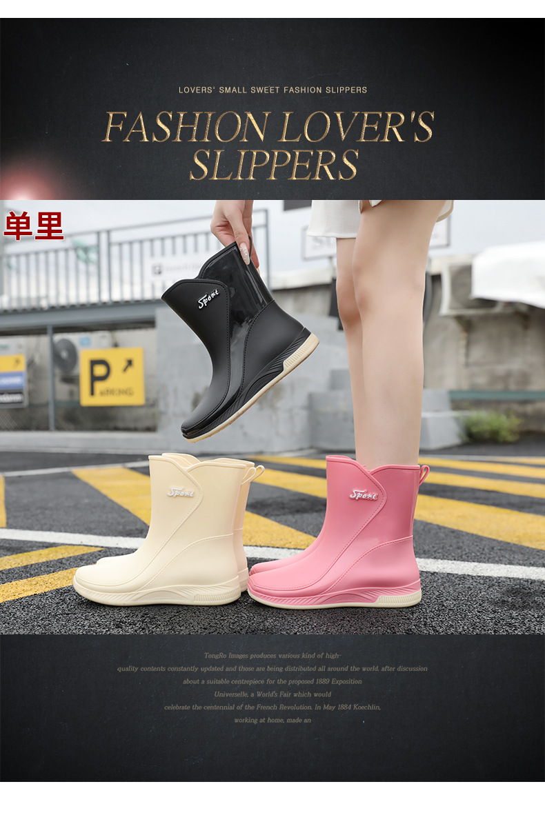 크로스 보더 패션 레인 부츠 여성용 중간 배럴 레인 부츠 두꺼운 밑창 미끄럼 방지 외부 고무 신발 방수 야외 낚시 세차 물 신발 여성