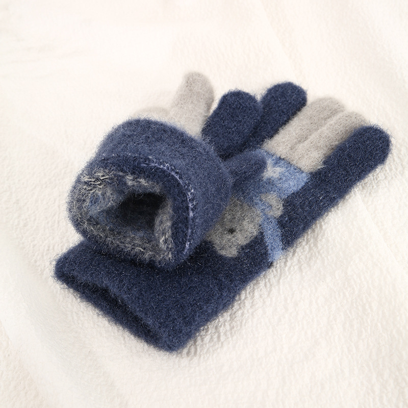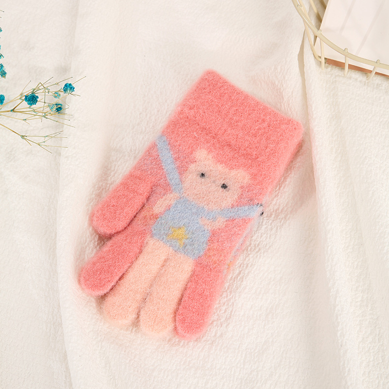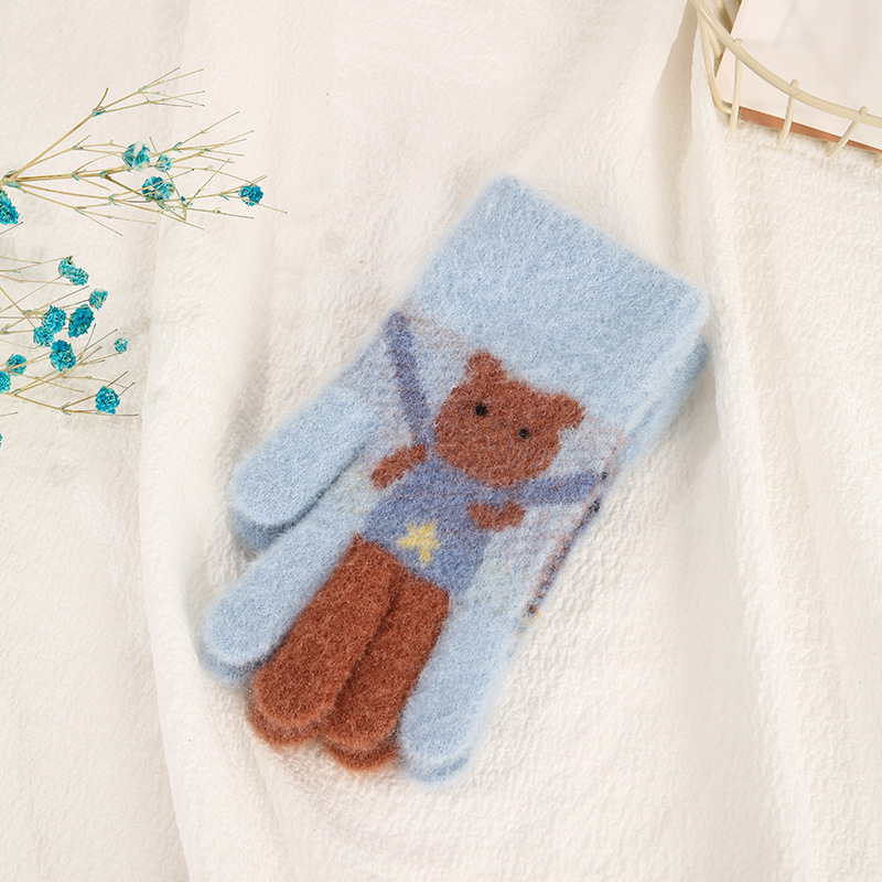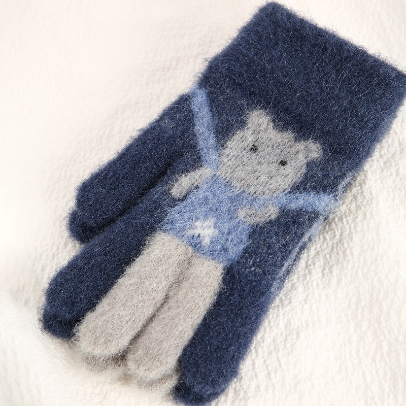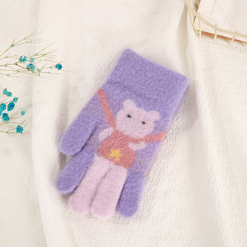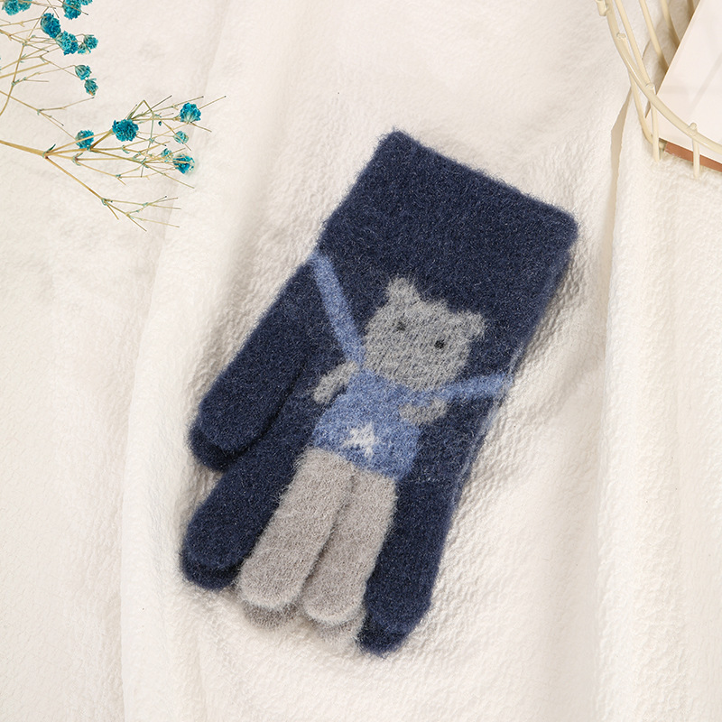 어린이 장갑 가을과 겨울 다섯 손가락 만화 곰 소년과 소녀 초등 학생을위한 방한 따뜻한 니트 장갑