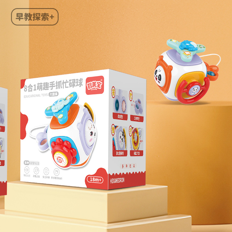 유아용 귀여운 손잡이 공 8-in-1 몬테소리 육면체 활동 공 아기 촉각 감각 훈련 조기 교육 장난감스토어 가기