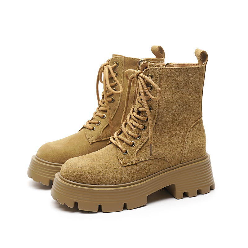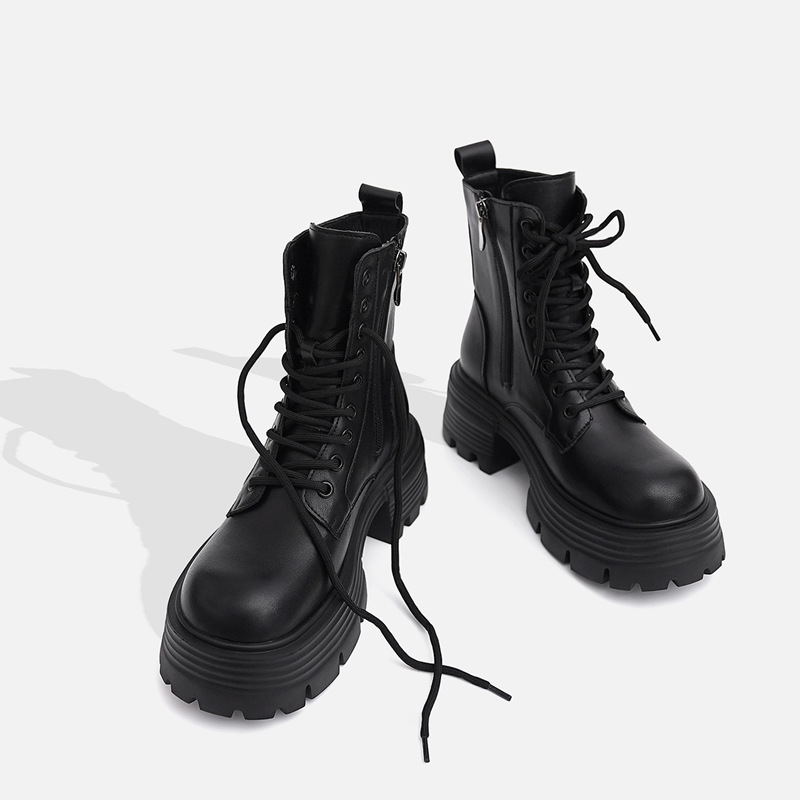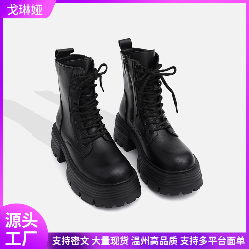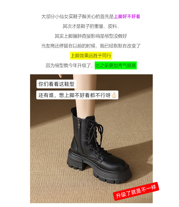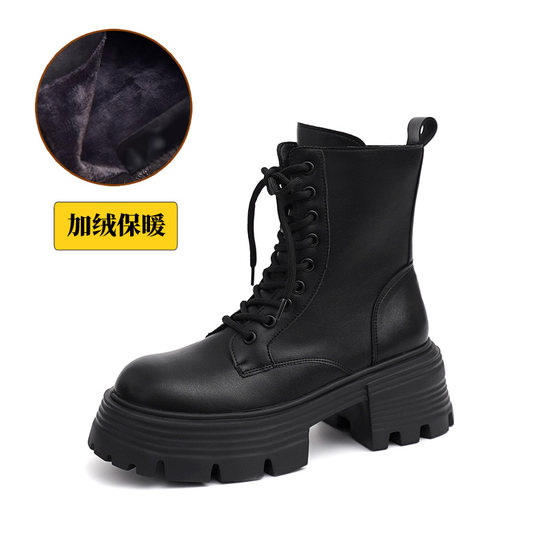 마틴 부츠 여성 가을, 겨울 신작 싱글 부츠 두꺼운 밑창 내부 고조 영국 스타일 슬림 부츠 짧은 부츠 레이스 업 부츠