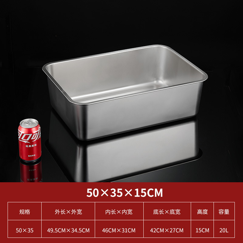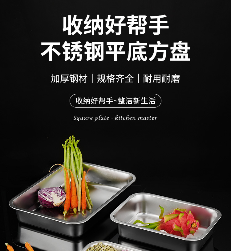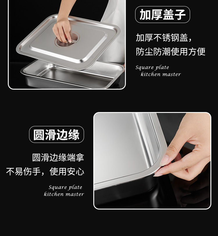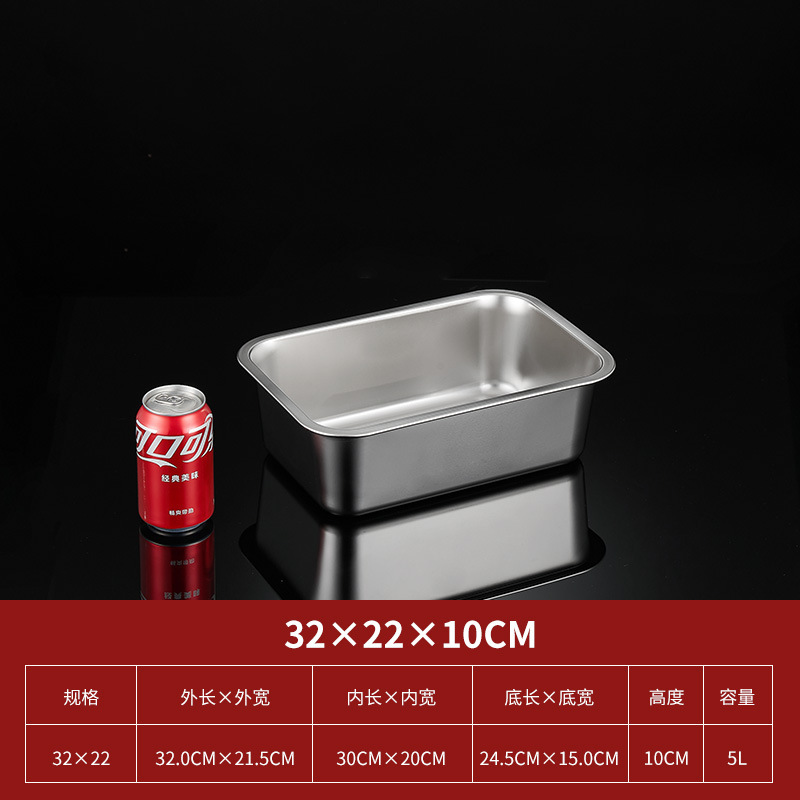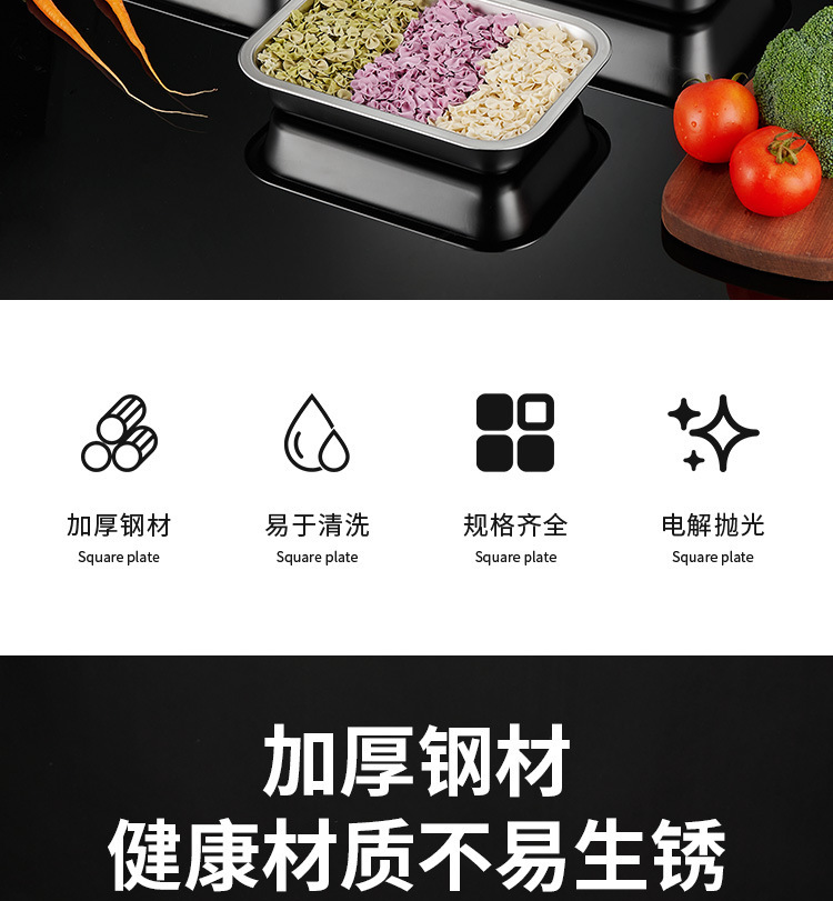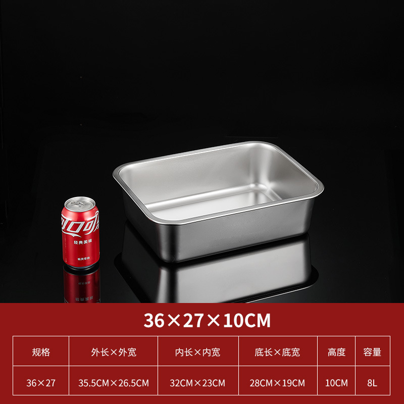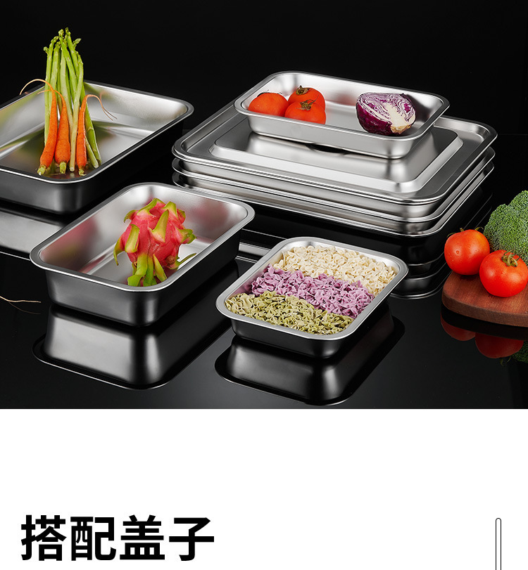 스테인레스 스틸 분지 직사각형 심화 트레이 평면 바닥 사각 분지 뷔페 플레이트 여러 냄비 패스트 푸드 뚜껑이있는 야채 분지 상자스토어 가기