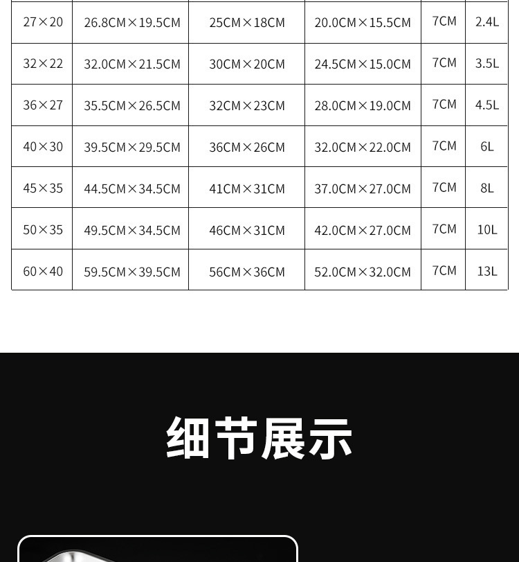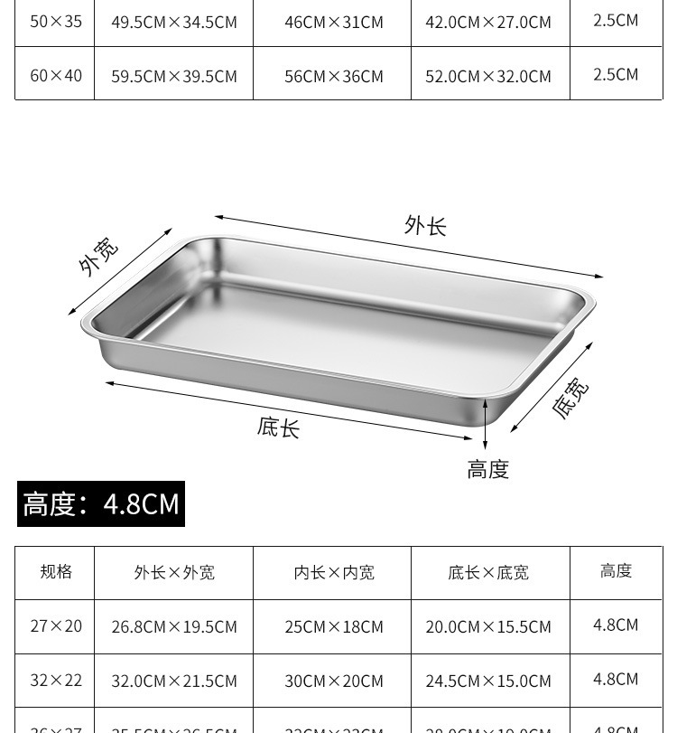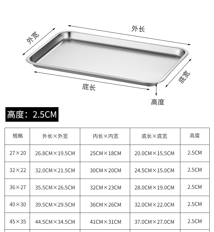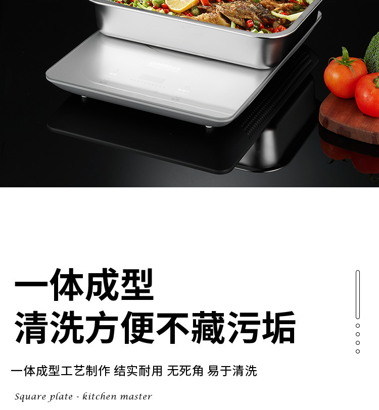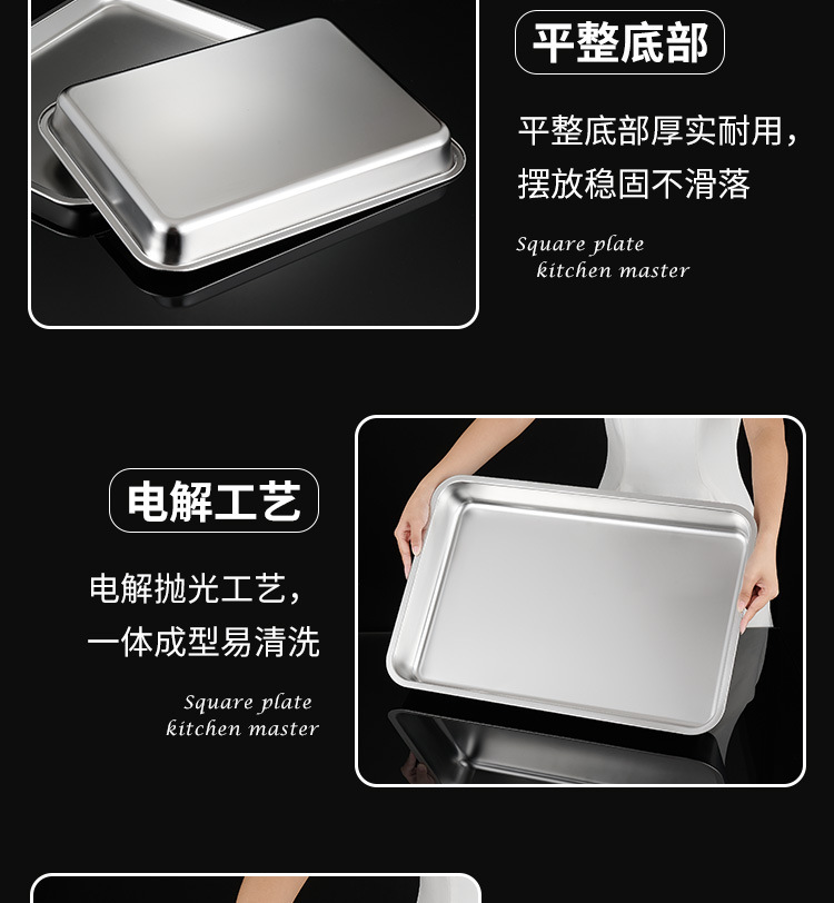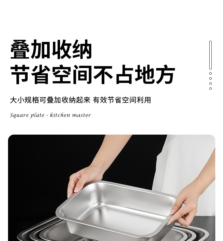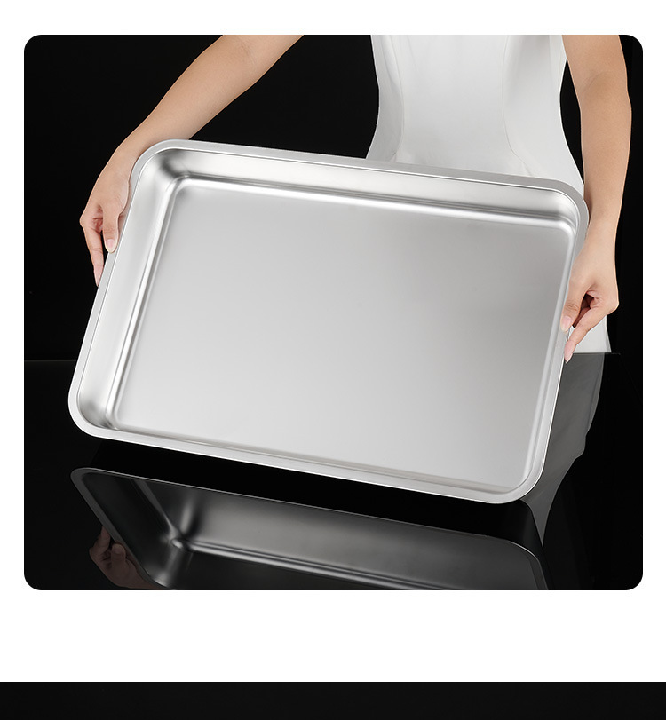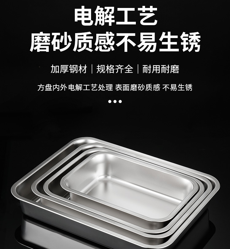 스테인레스 스틸 분지 직사각형 심화 트레이 평면 바닥 사각 분지 뷔페 플레이트 여러 냄비 패스트 푸드 뚜껑이있는 야채 분지 상자스토어 가기
