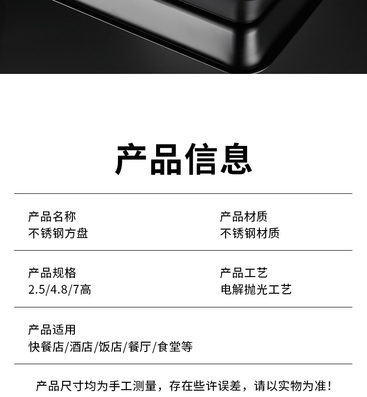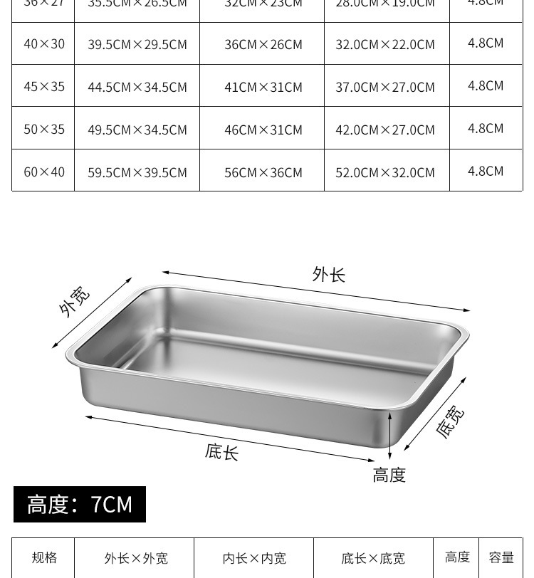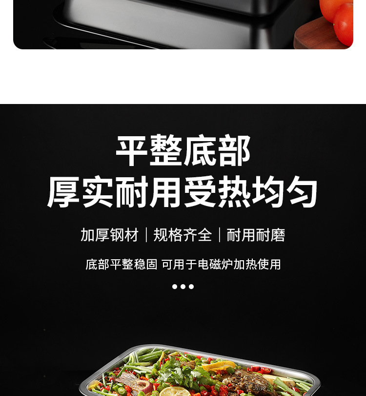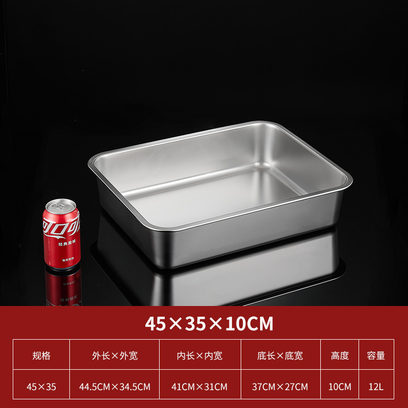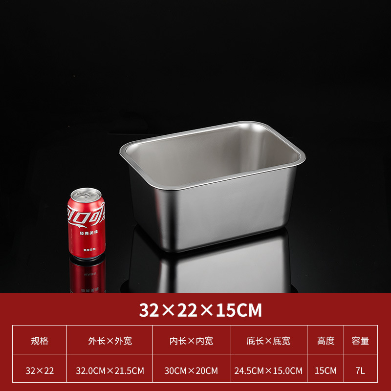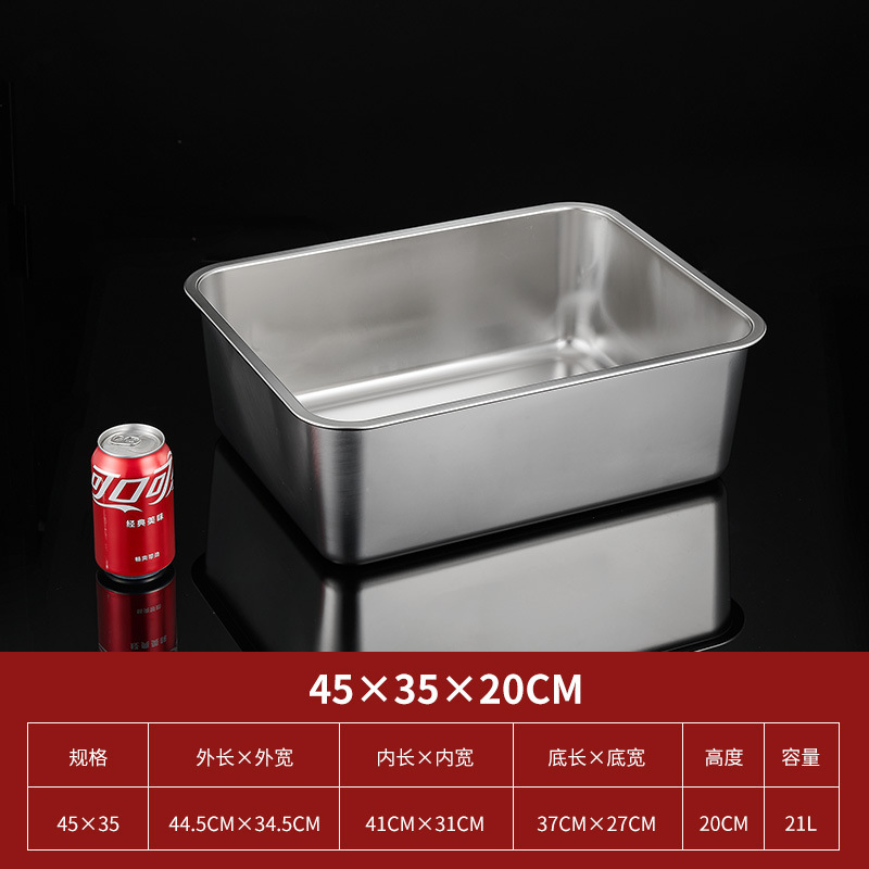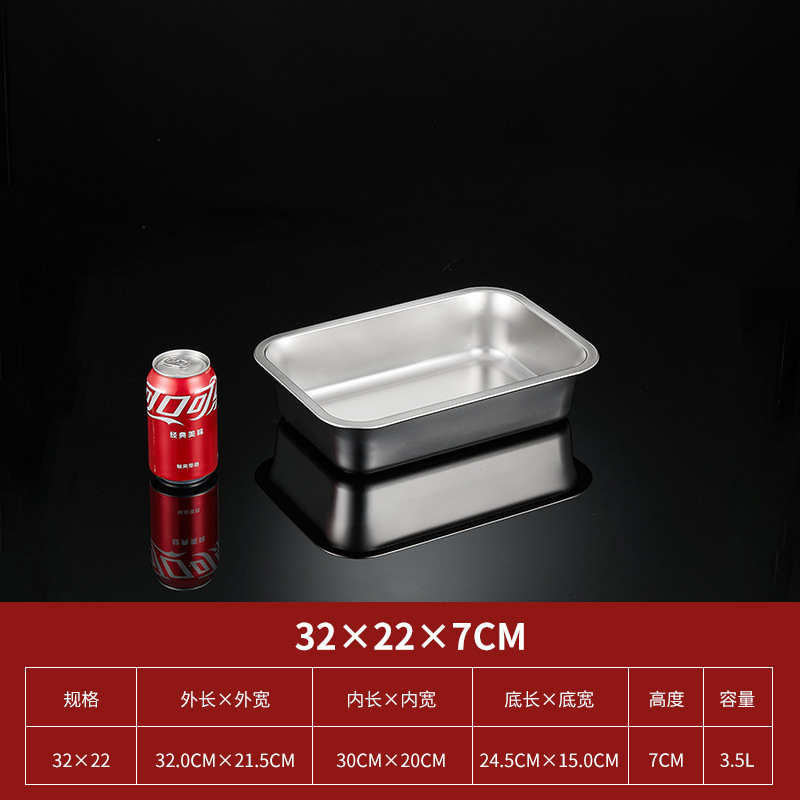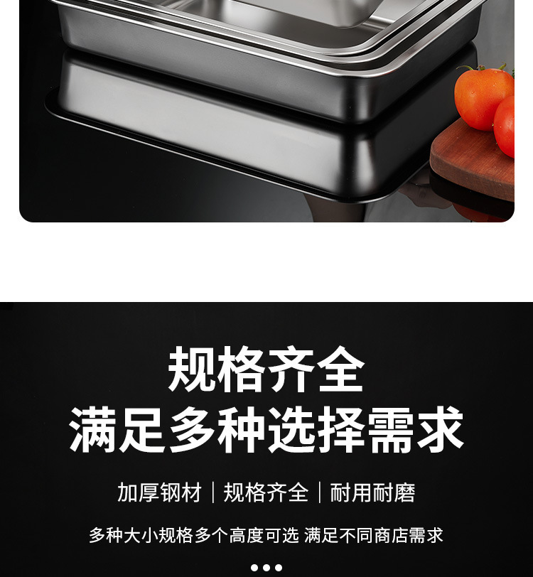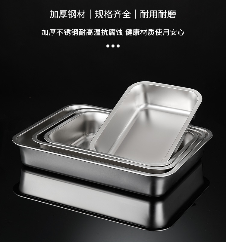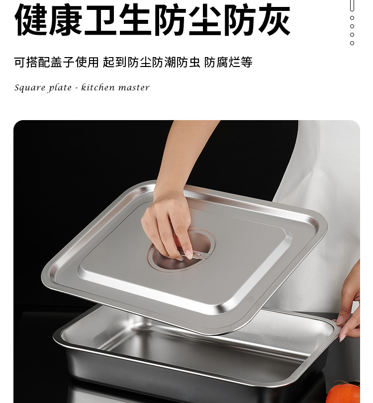 스테인레스 스틸 분지 직사각형 심화 트레이 평면 바닥 사각 분지 뷔페 플레이트 여러 냄비 패스트 푸드 뚜껑이있는 야채 분지 상자
